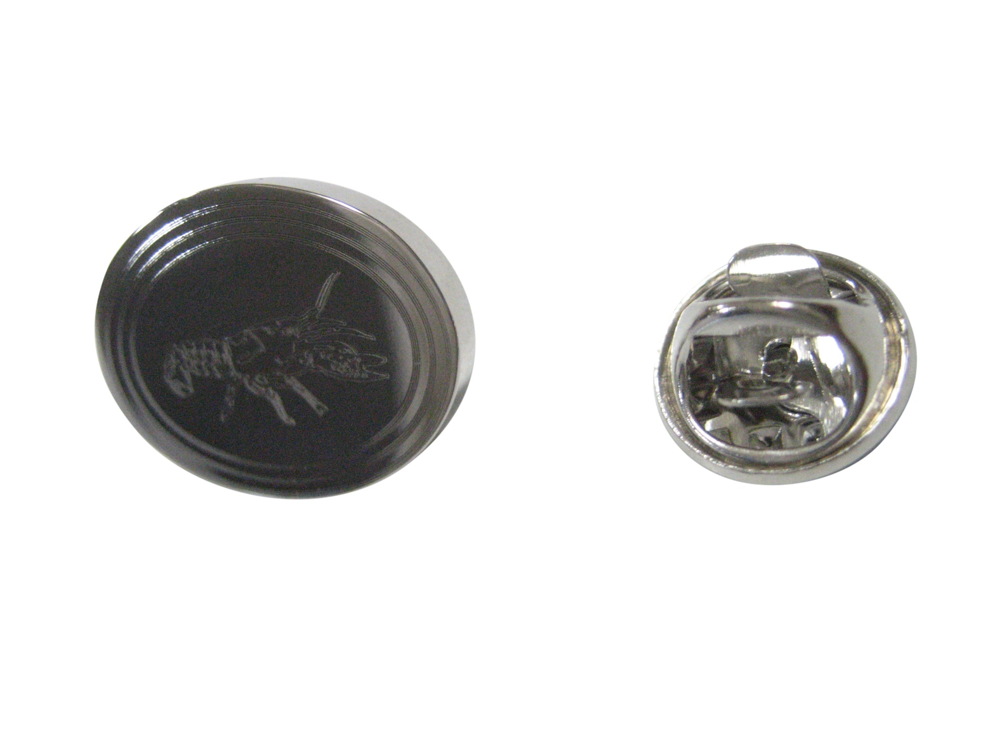 Silver Toned Oval Etched Crayfish Crawfish Crawdad Lapel Pin