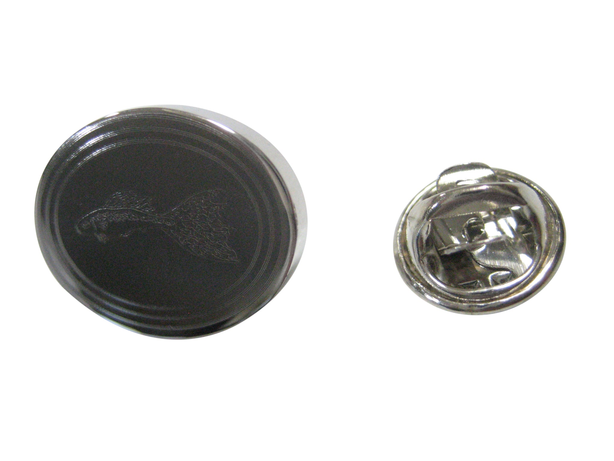 Silver Toned Oval Etched Guppy Fish Lapel Pin