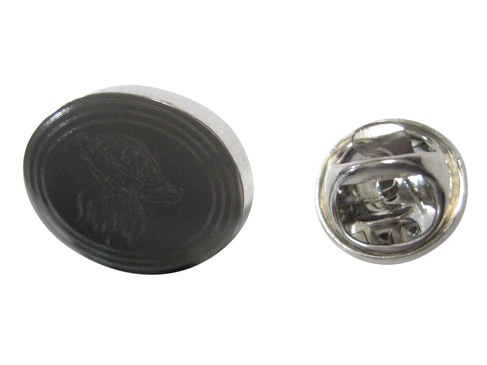 Silver Toned Oval Etched Jellyfish Lapel Pin