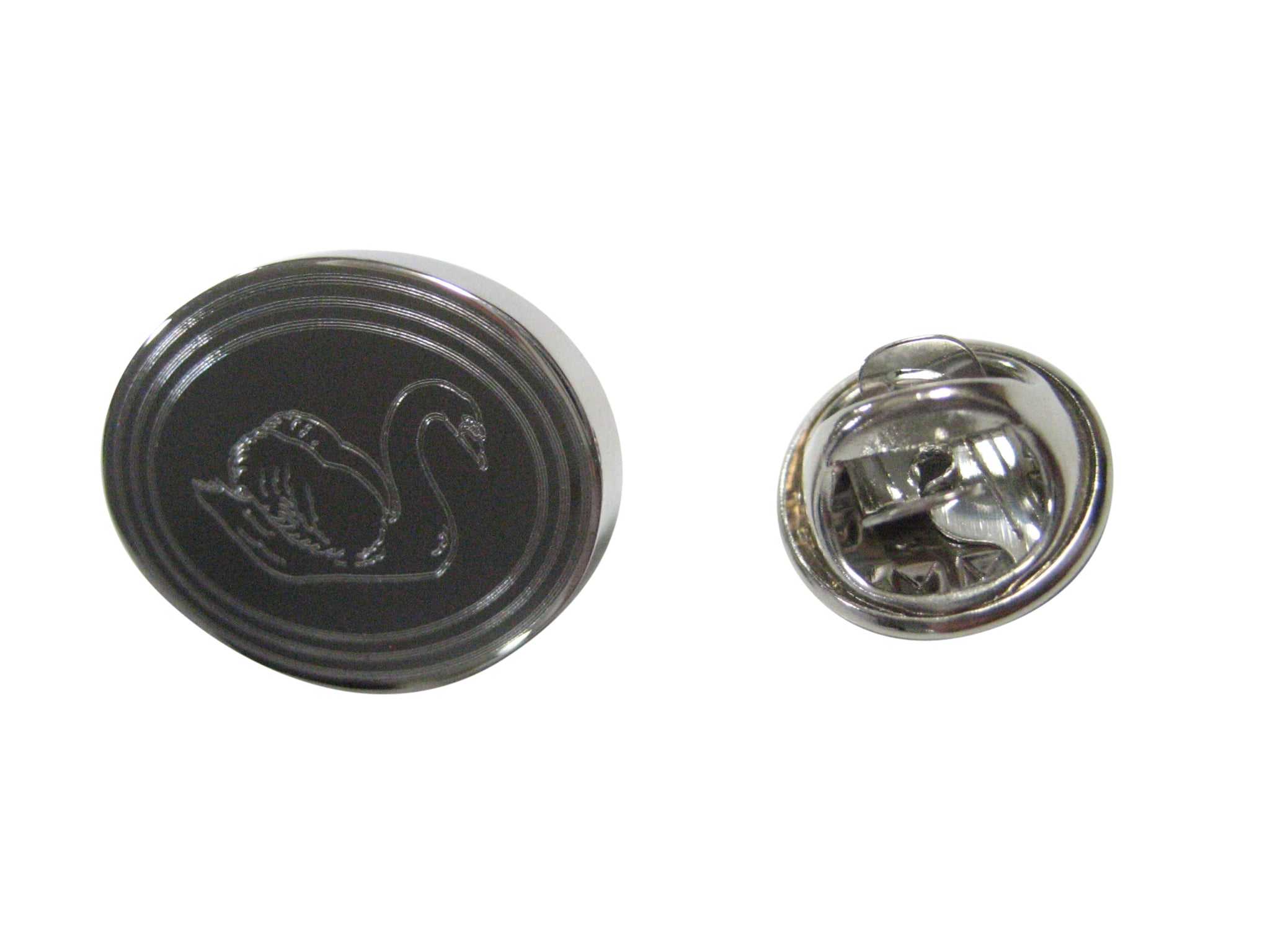 Silver Toned Oval Etched Swan Bird Lapel Pin