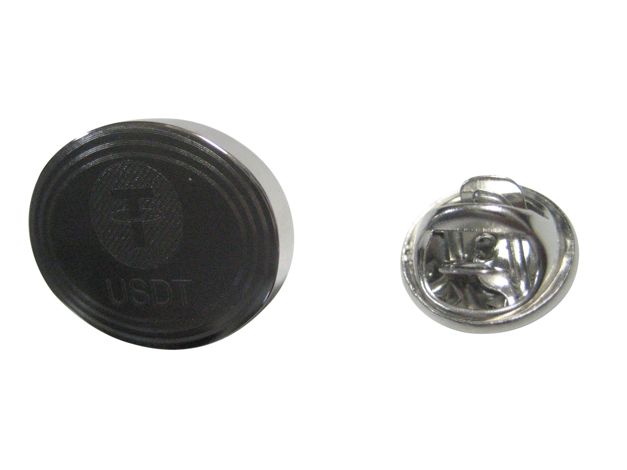 Silver Toned Oval Etched Tether Coin Cryptocurrency Blockchain Lapel Pin