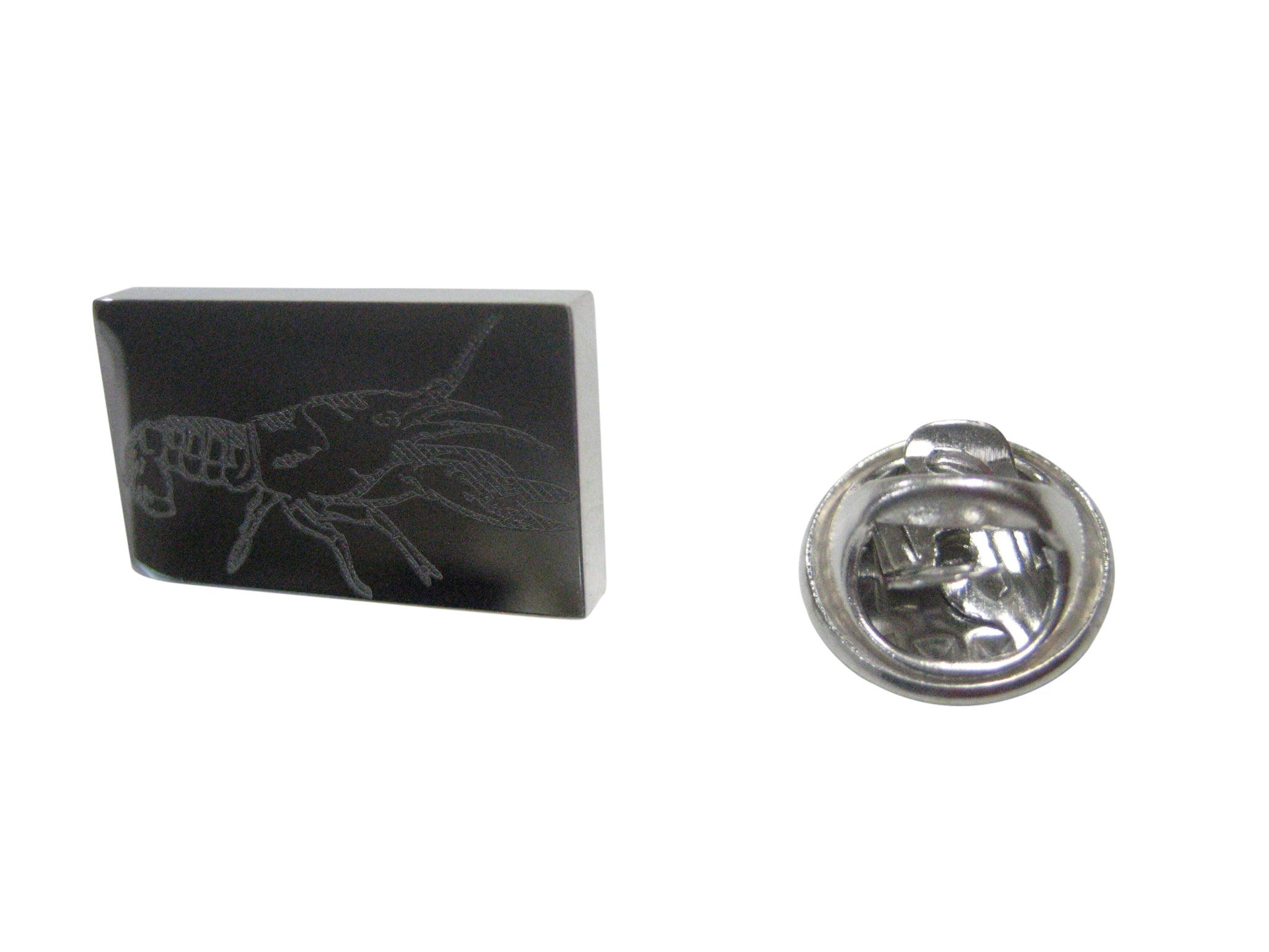 Silver Toned Rectangular Etched Crayfish Crawfish Crawdad Lapel Pin