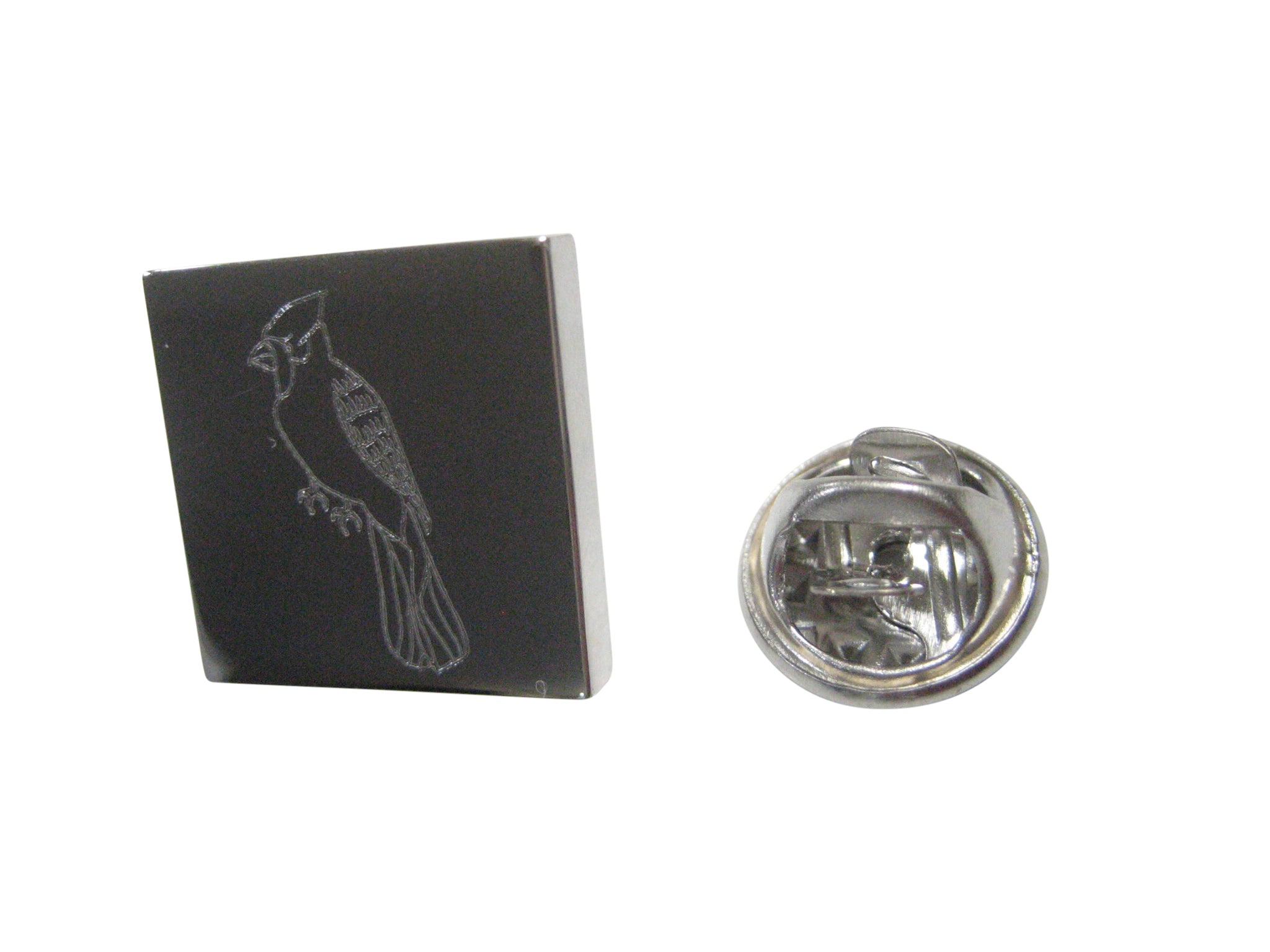 Silver Toned Square Etched Blue Jay Bird Lapel Pin