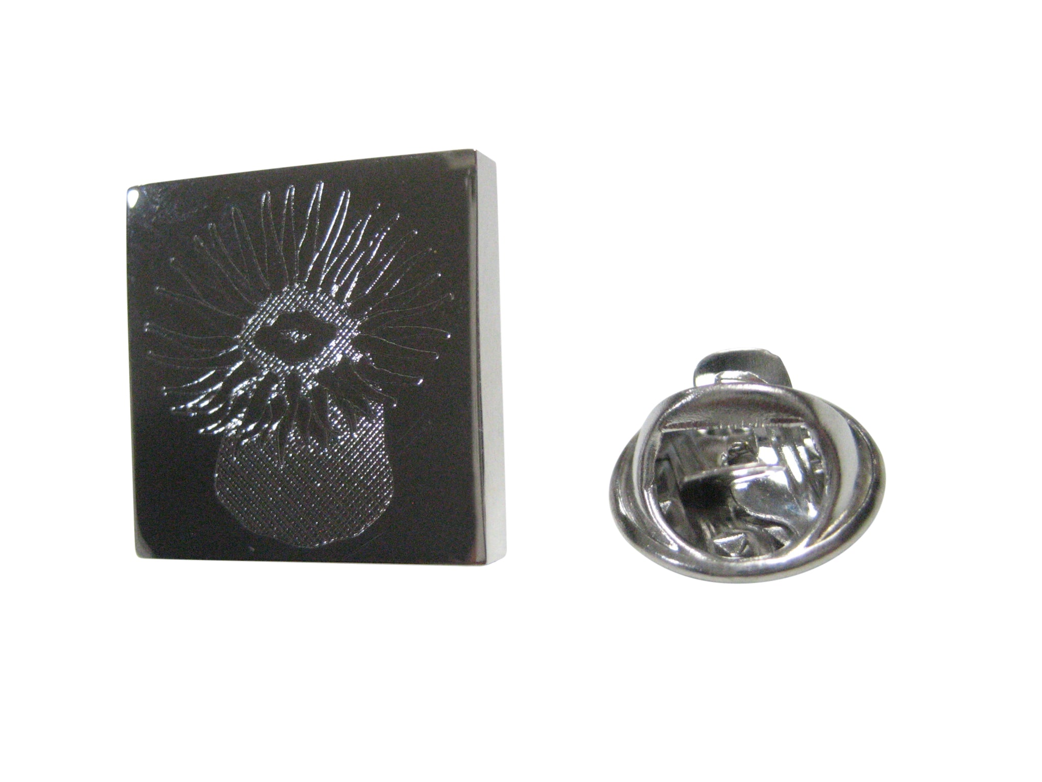 Silver Toned Square Etched Sea Anemone Lapel Pin