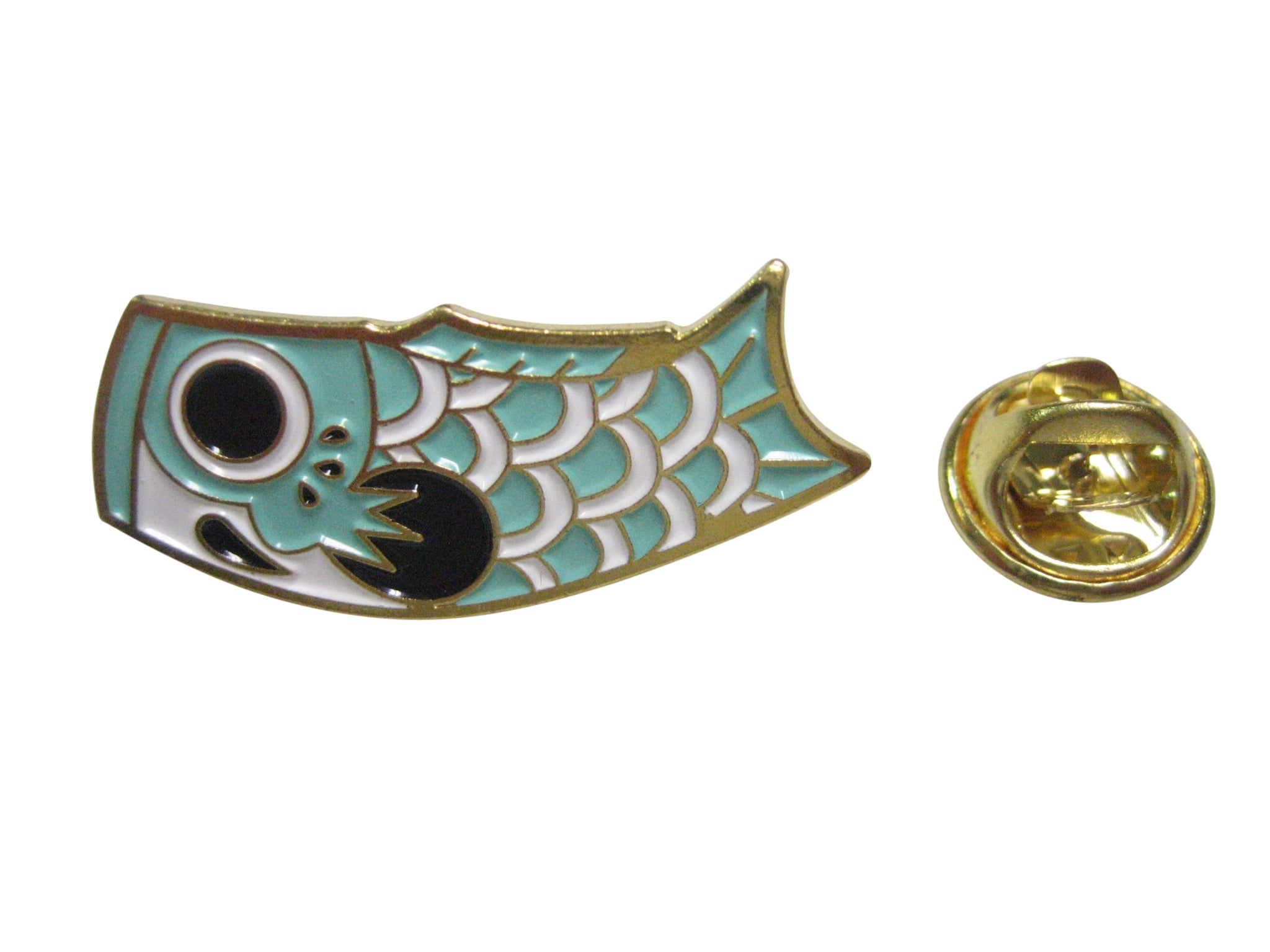 Teal Toned Festival Koi Flag Koinobori Lapel Pin