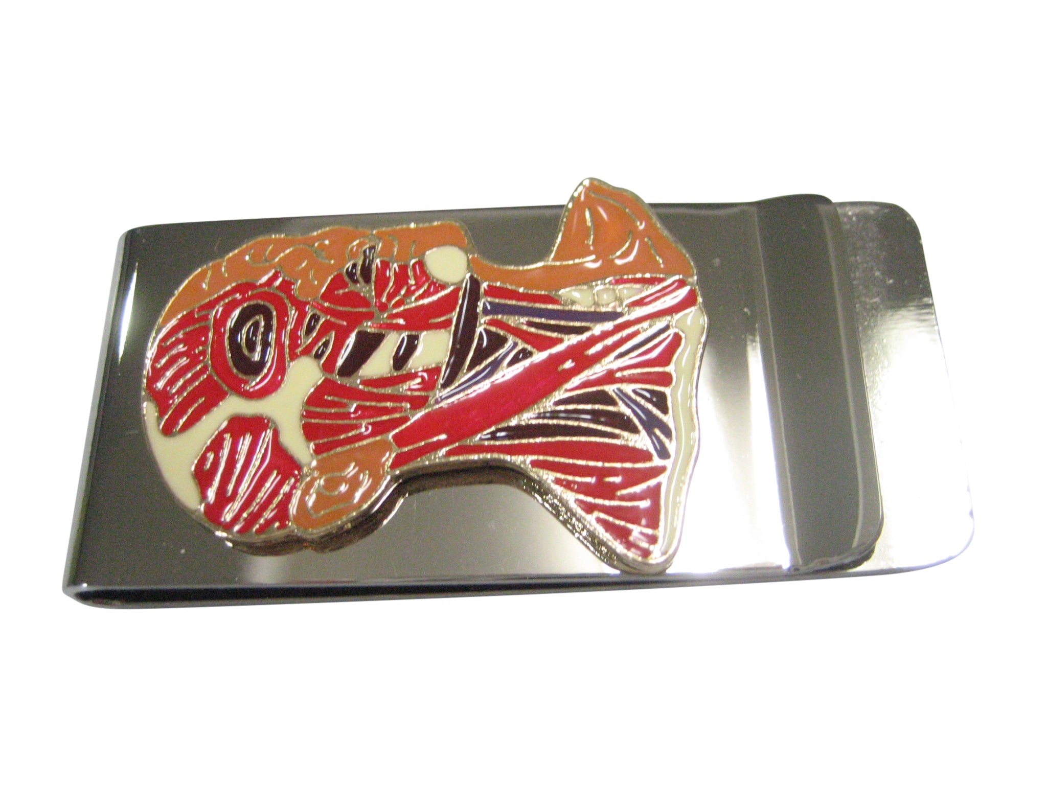 Silver Toned Etched Angry Skull and Crossbones Money Clip