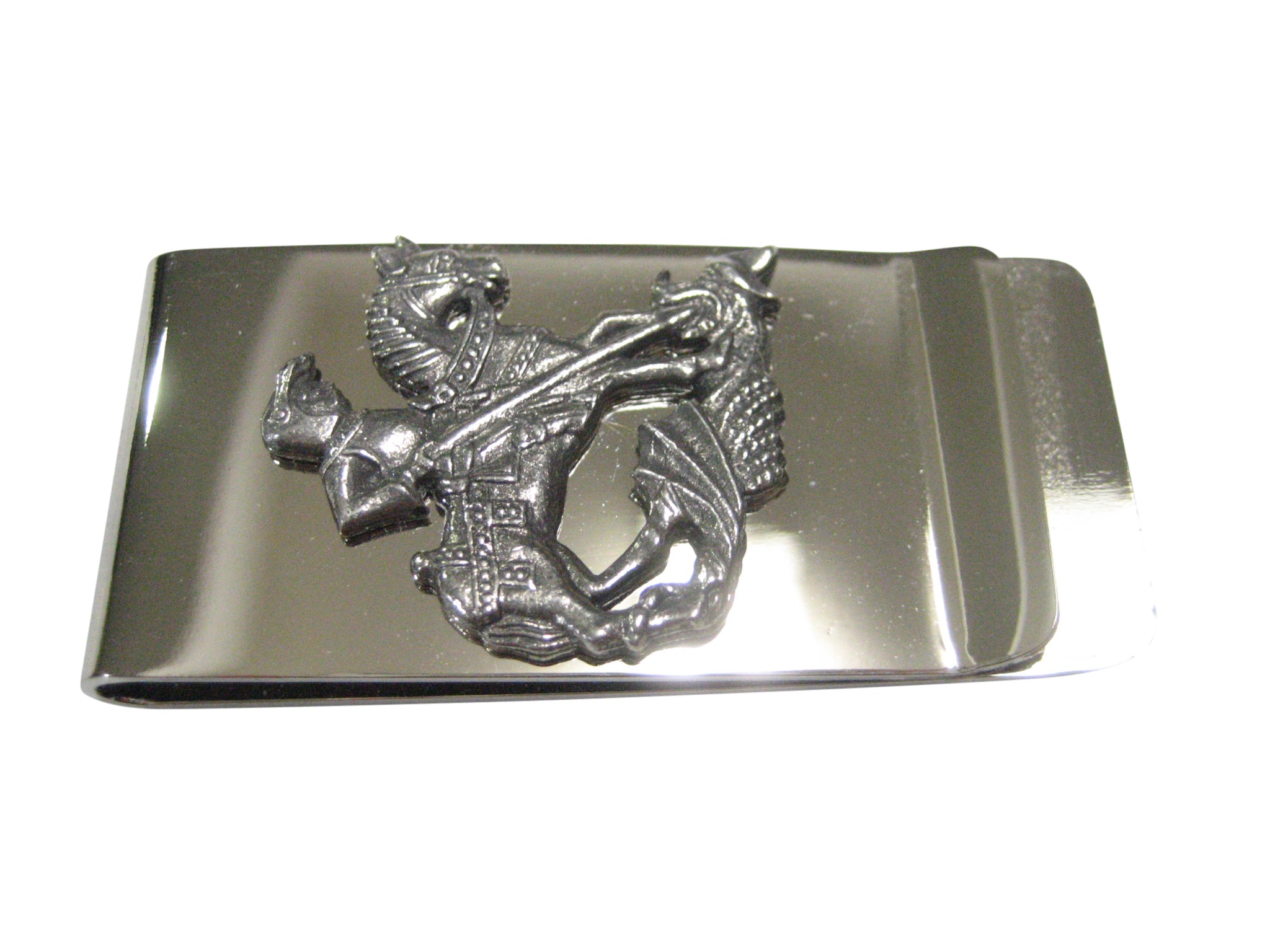 Silver Toned Etched Angry Skull and Crossbones Money Clip