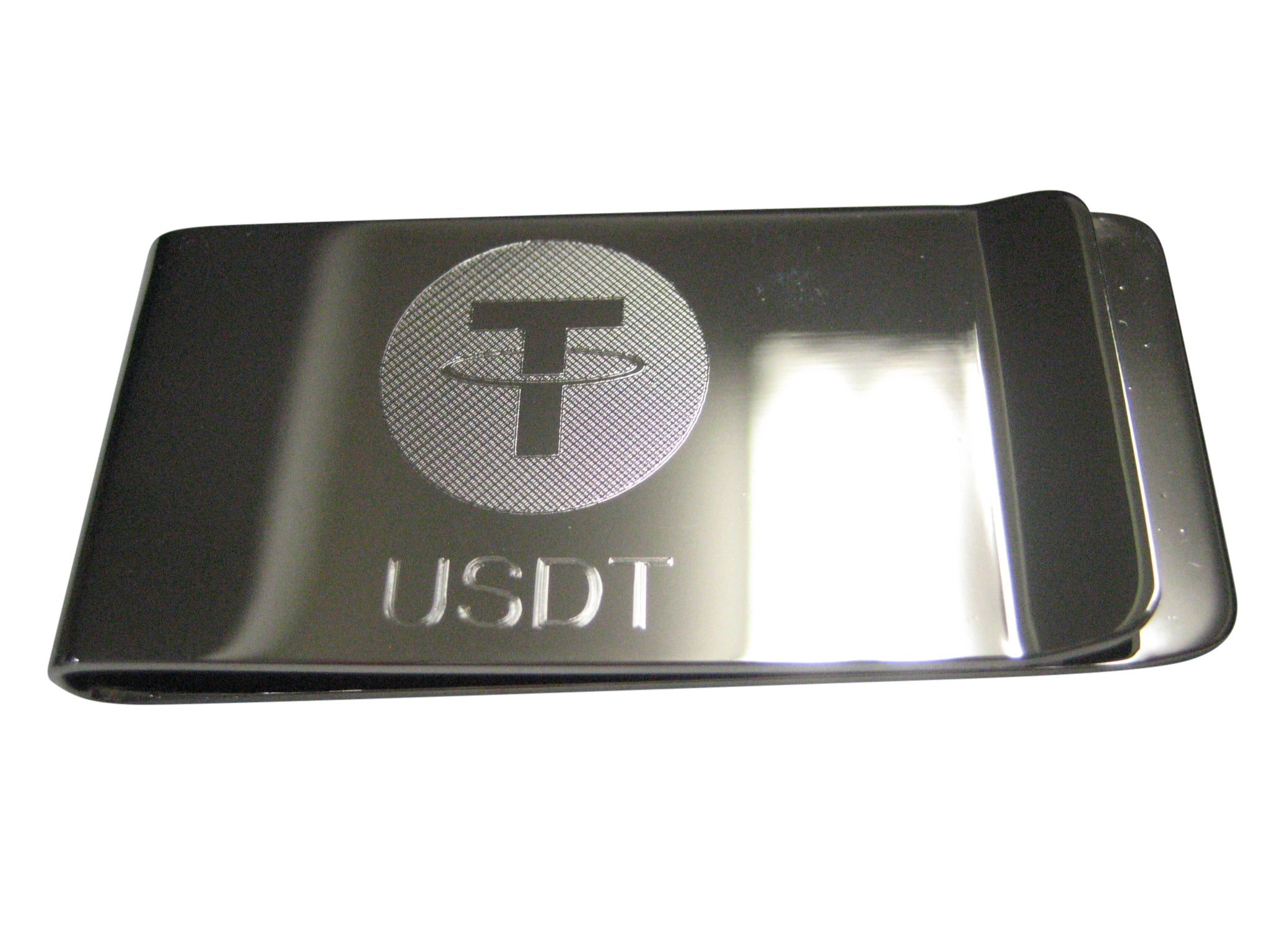 Silver Toned Etched Sleek Tether Coin Cryptocurrency Blockchain Money Clip