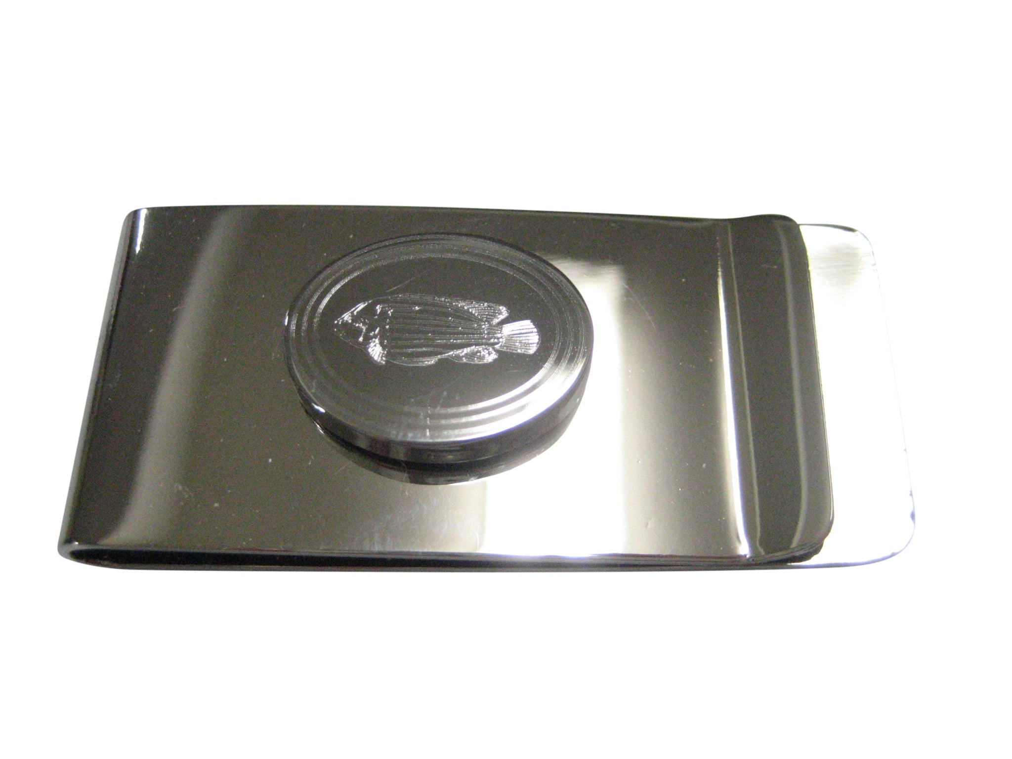 Silver Toned Oval Etched African Cichlid Fish Money Clip