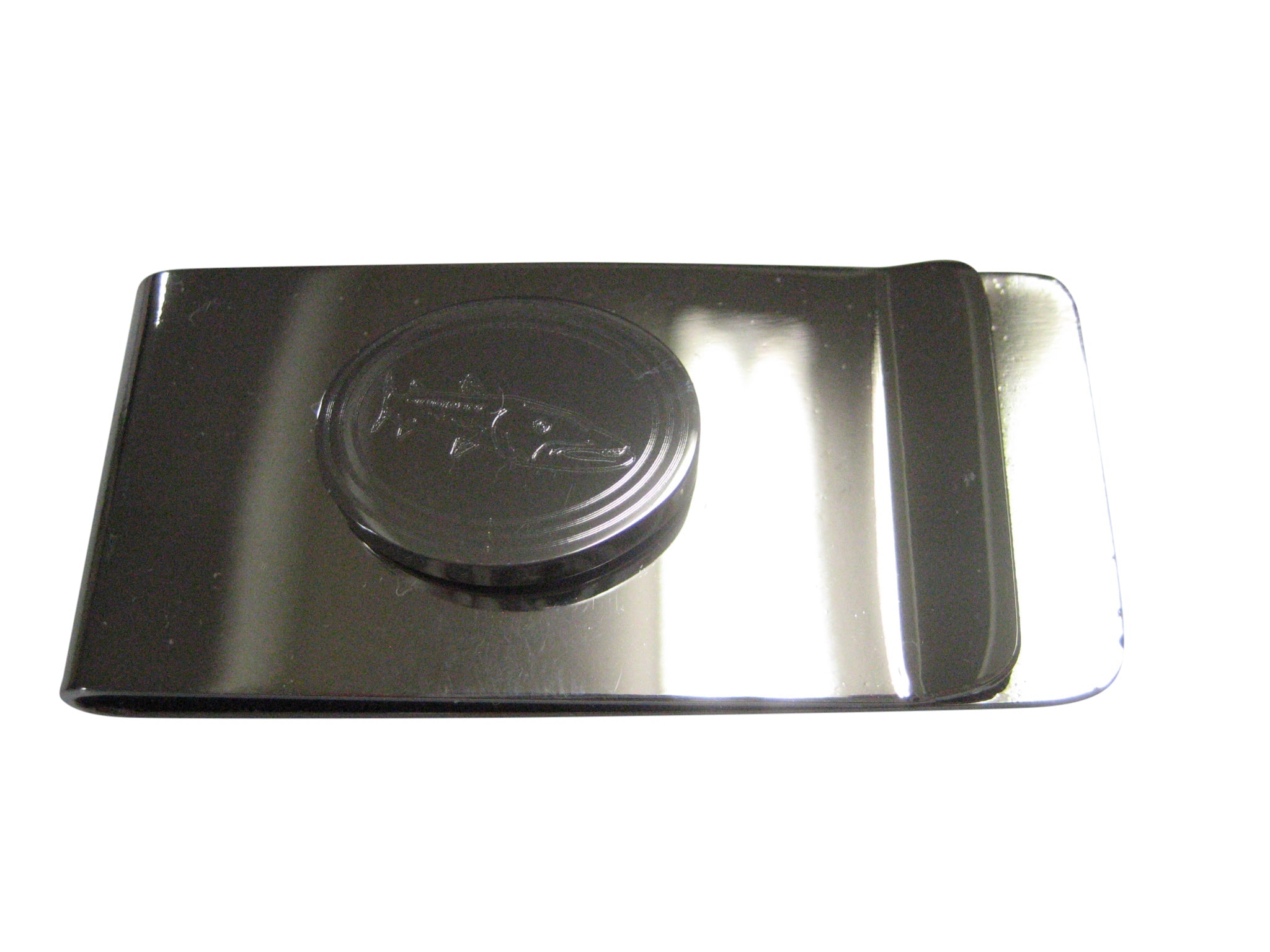 Silver Toned Oval Etched Barracuda Fish Money Clip