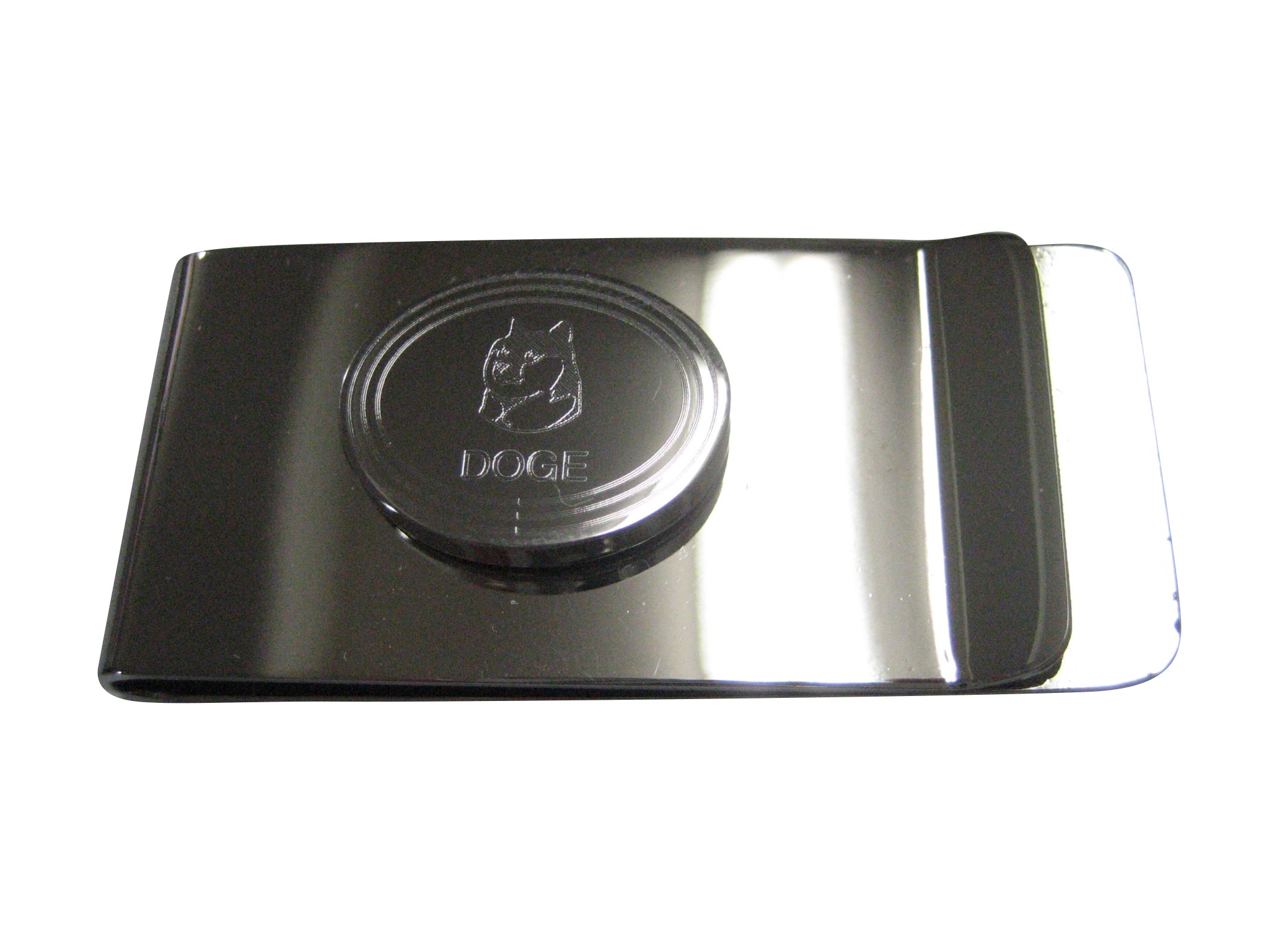 Silver Toned Oval Etched Doge Coin Cryptocurrency Blockchain With Shiba Dog Money Clip