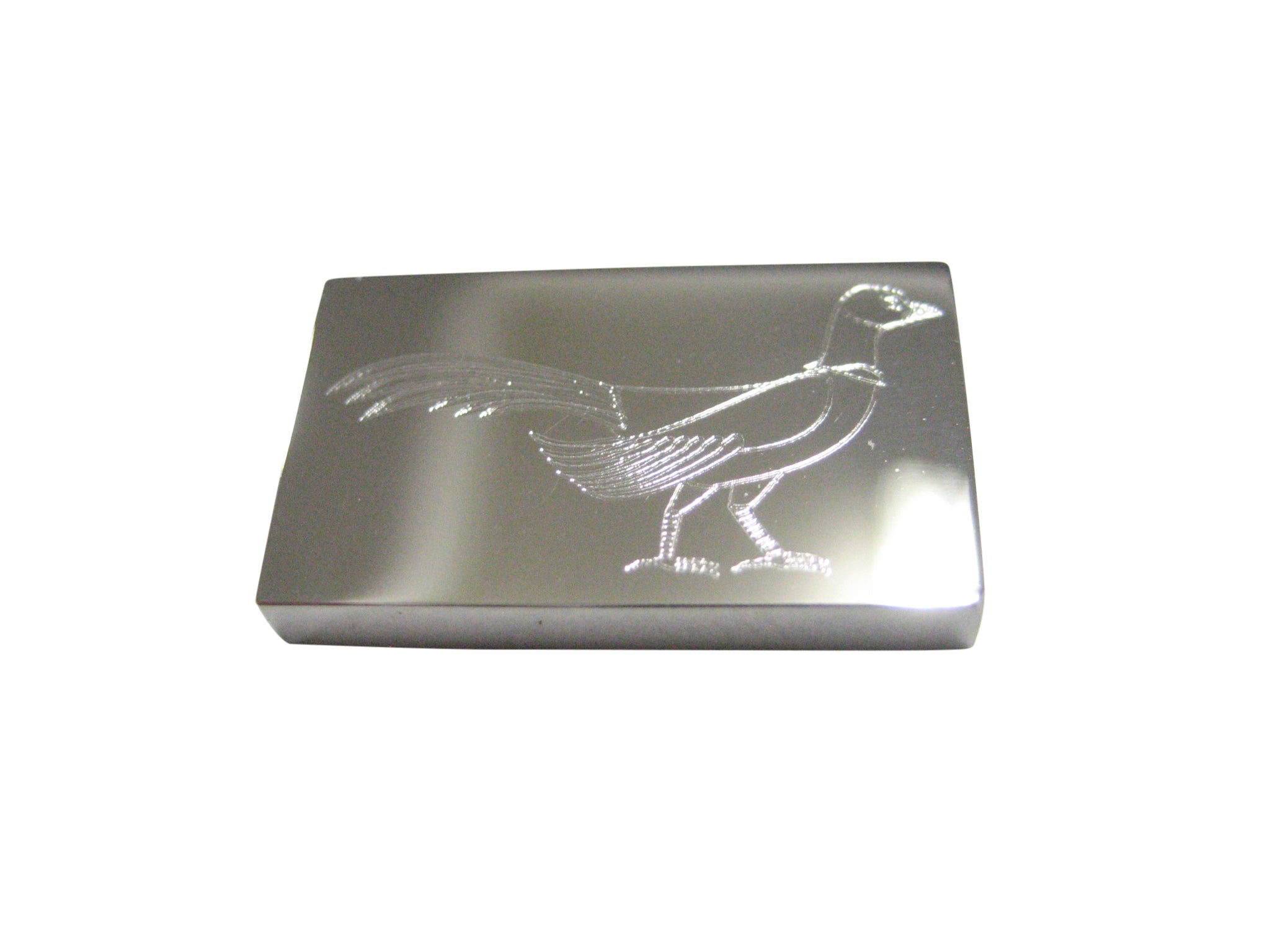 Silver Toned Rectangular Etched Pheasant Bird Magnet