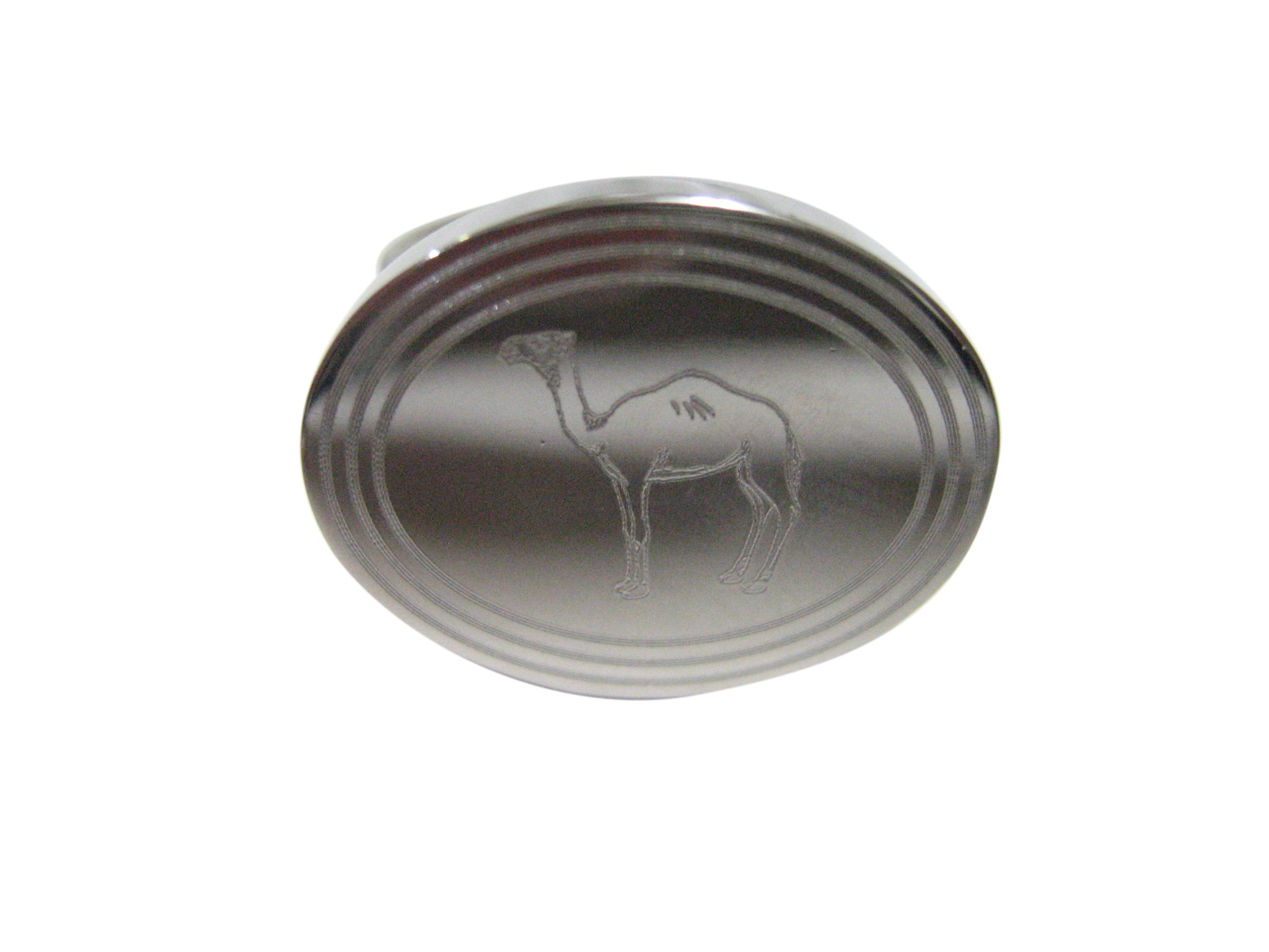 Silver Toned Etched Oval Camel Adjustable Size Fashion Ring