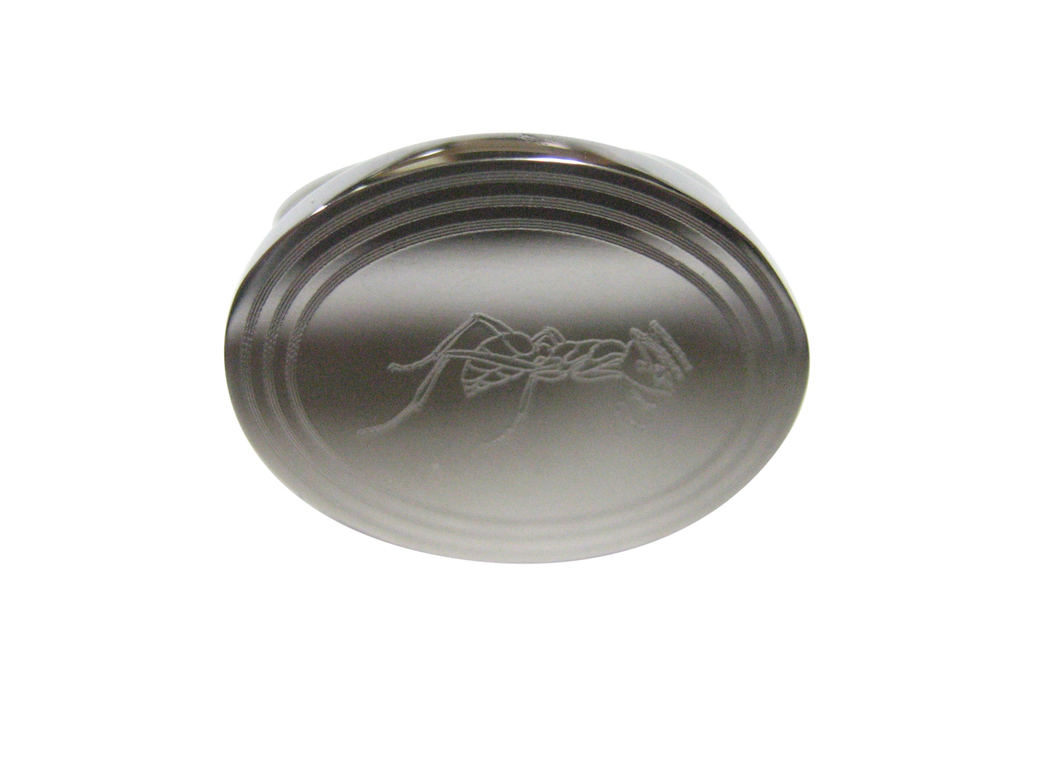 Silver Toned Etched Oval Detailed Ant Bug Insect Adjustable Size Fashion Ring