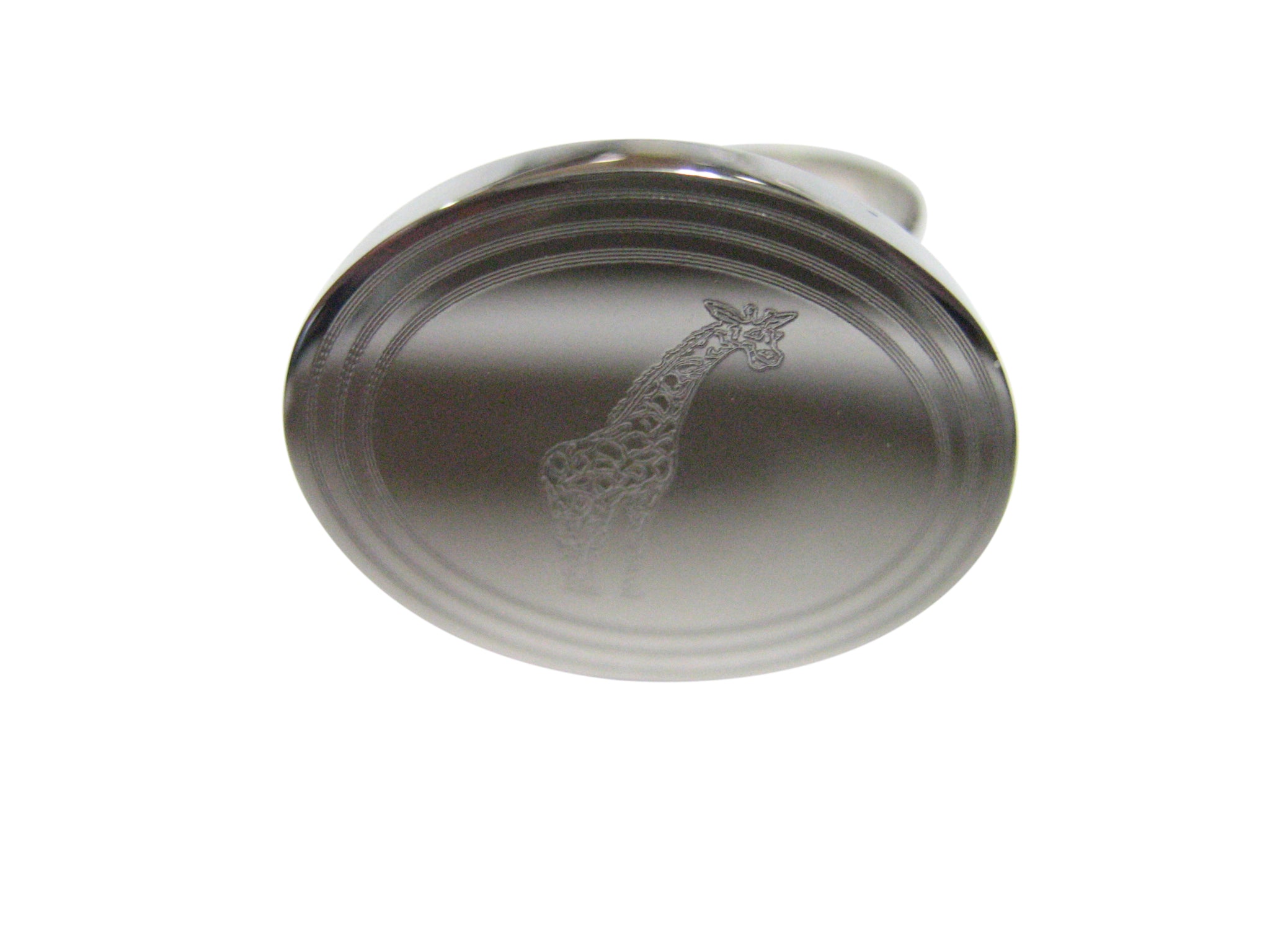 Silver Toned Etched Oval Giraffe Adjustable Size Fashion Ring