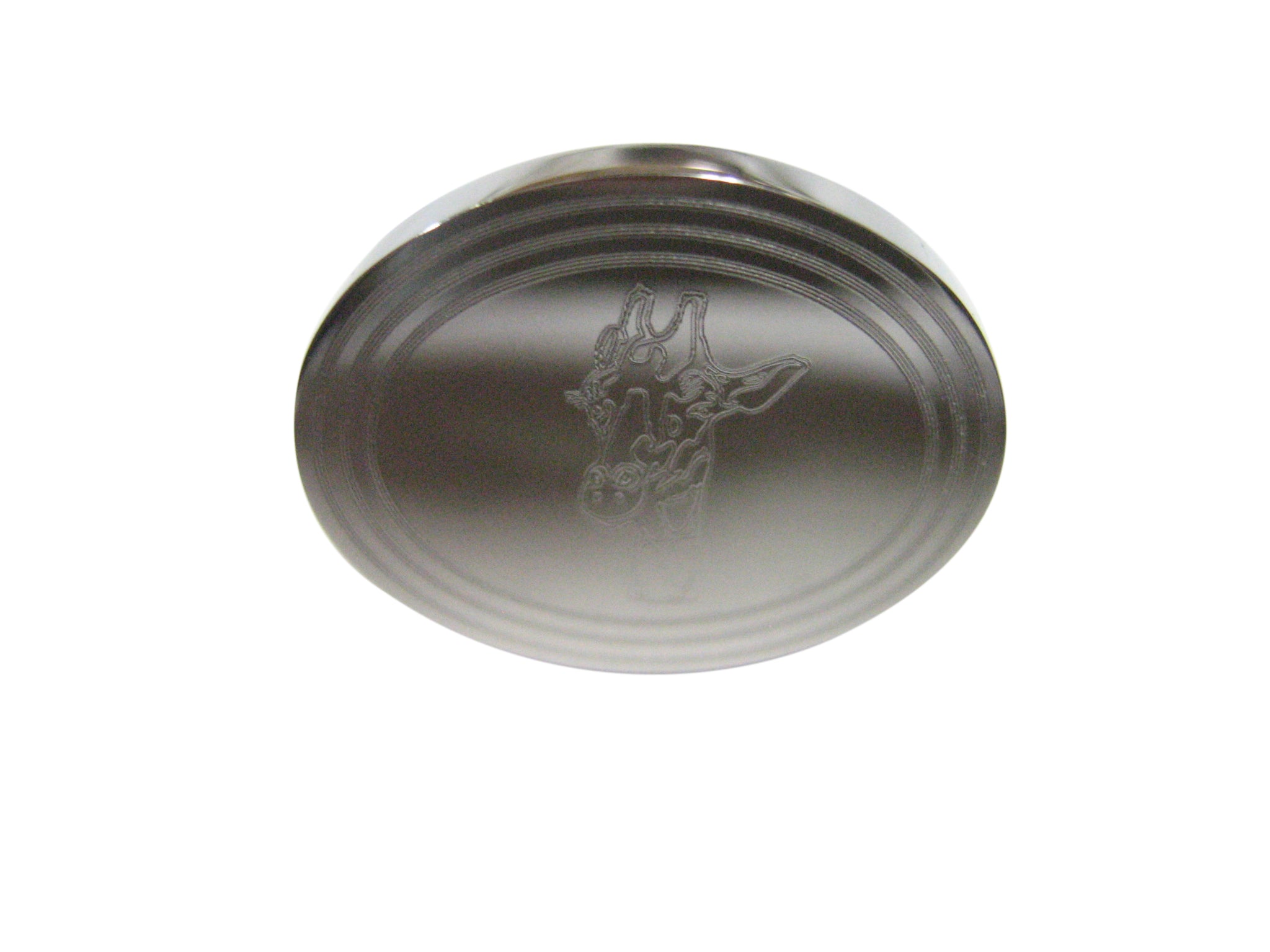 Silver Toned Etched Oval Giraffe Head Adjustable Size Fashion Ring