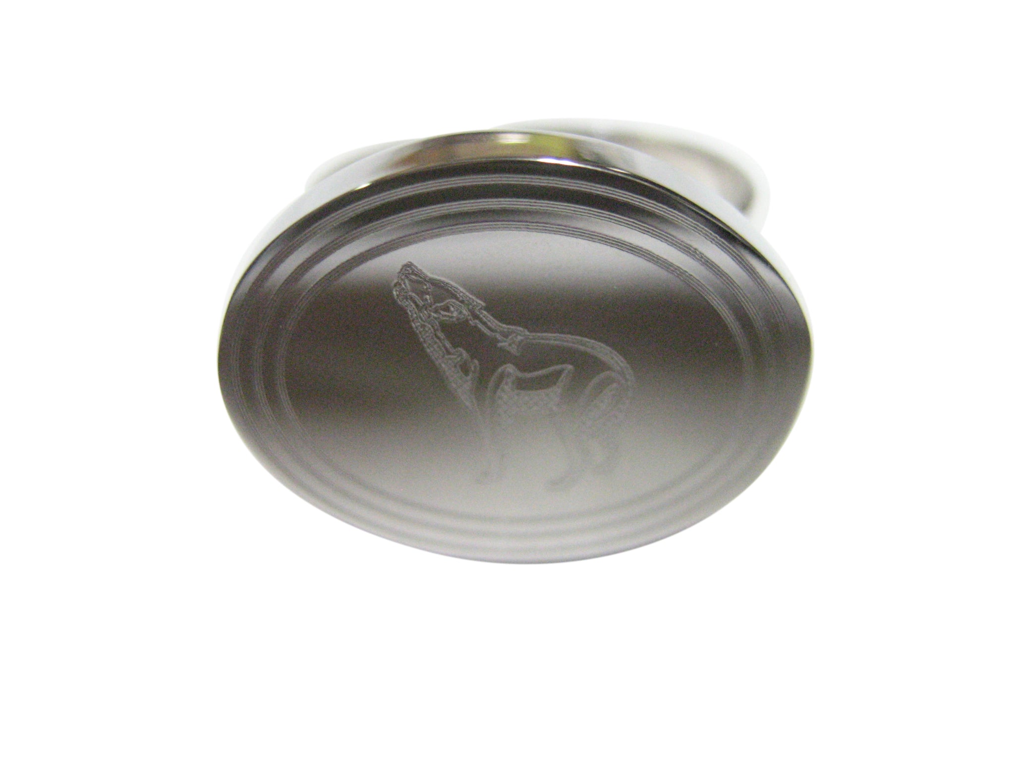 Silver Toned Etched Oval Howling Wolf Adjustable Size Fashion Ring