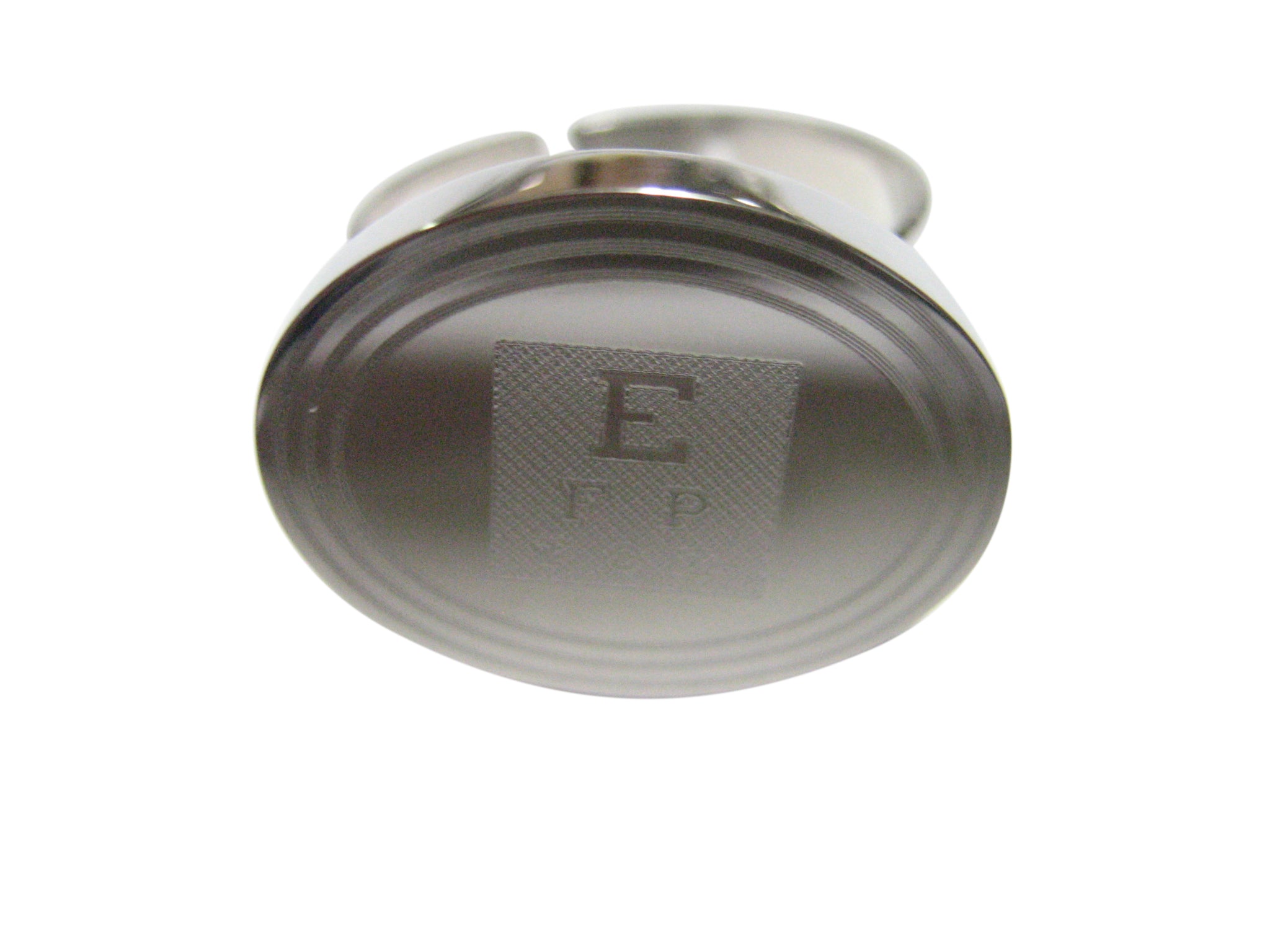Silver Toned Etched Oval Optometrist Adjustable Size Fashion Ring