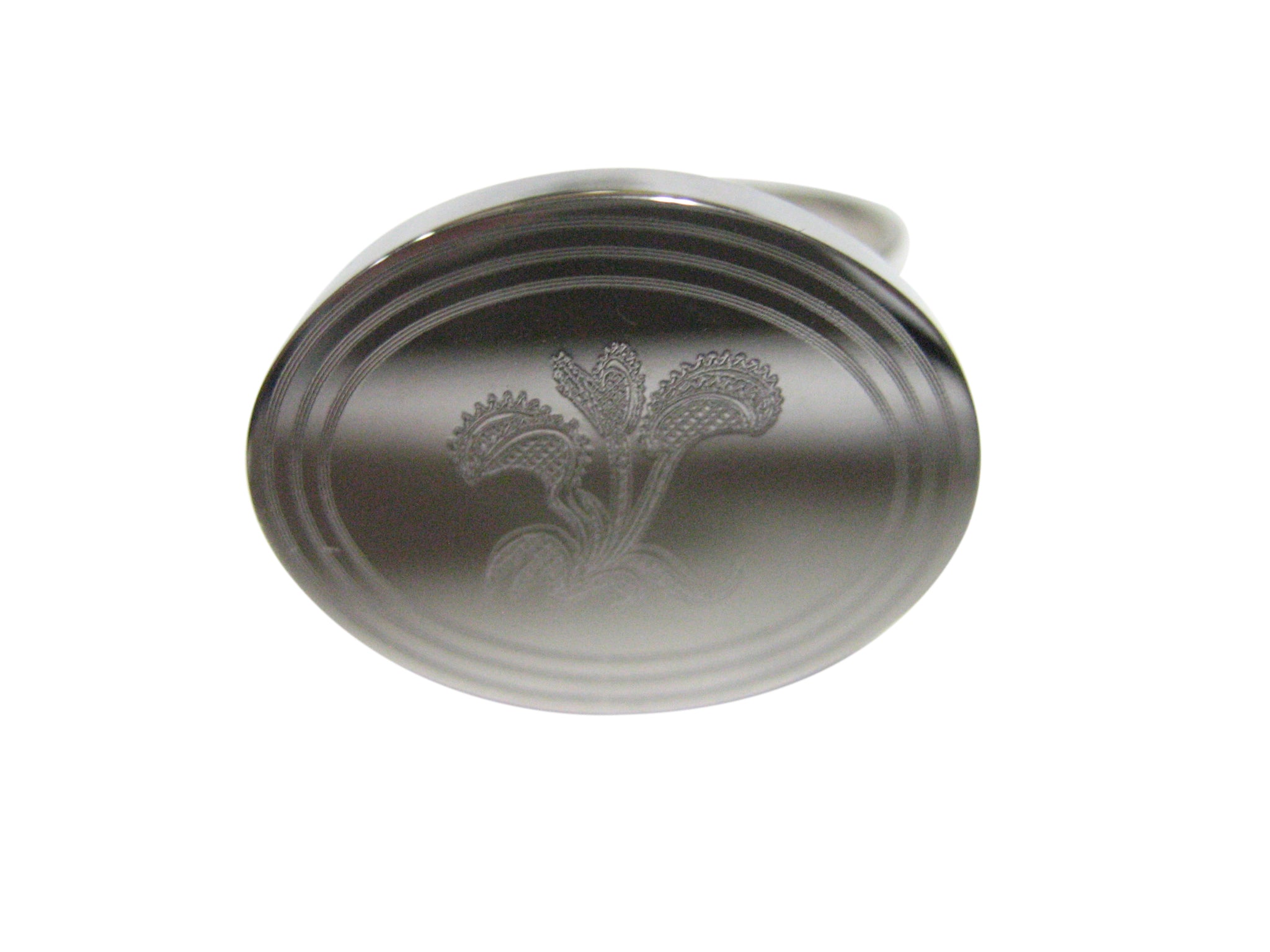 Silver Toned Etched Oval Venus Fly Trap Carnivorous Plant Adjustable Size Fashion Ring