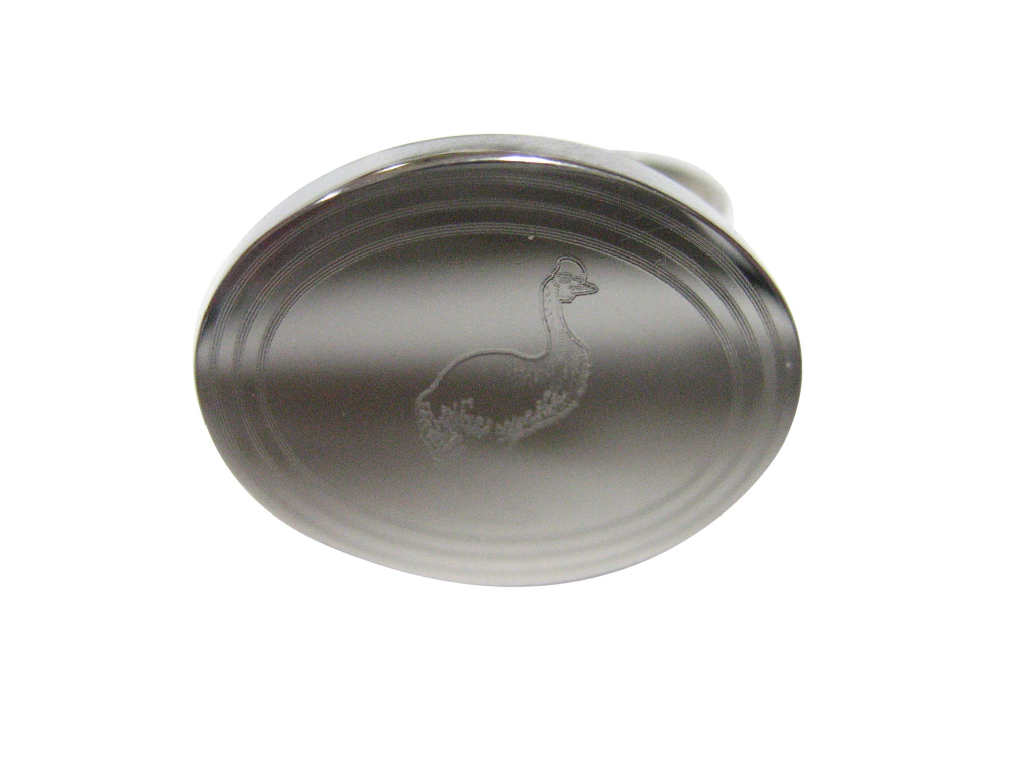 Silver Toned Oval Etched Cassowary Bird Adjustable Size Fashion Ring