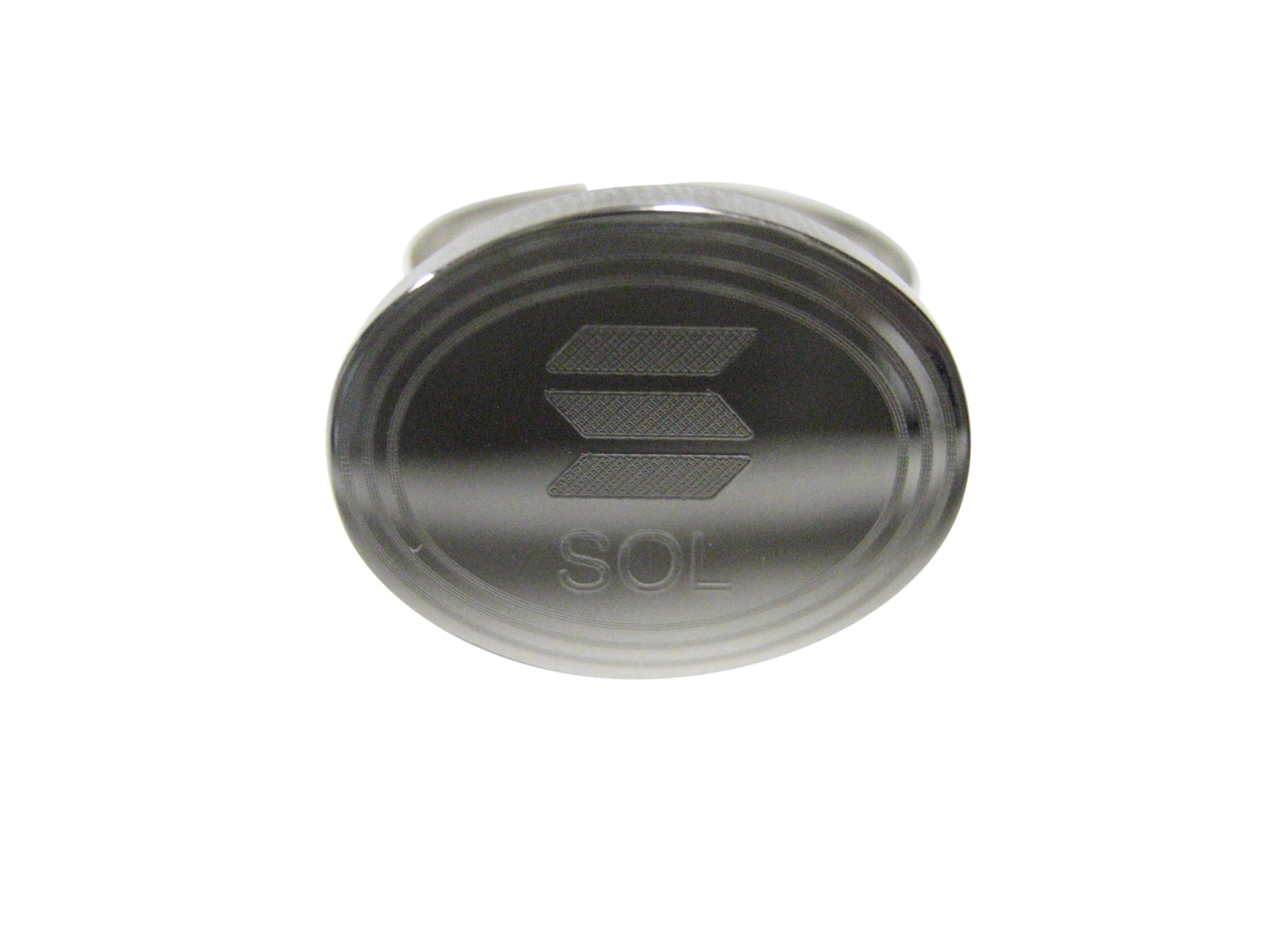 Silver Toned Oval Etched Solana Coin Cryptocurrency Blockchain Adjustable Size Fashion Ring