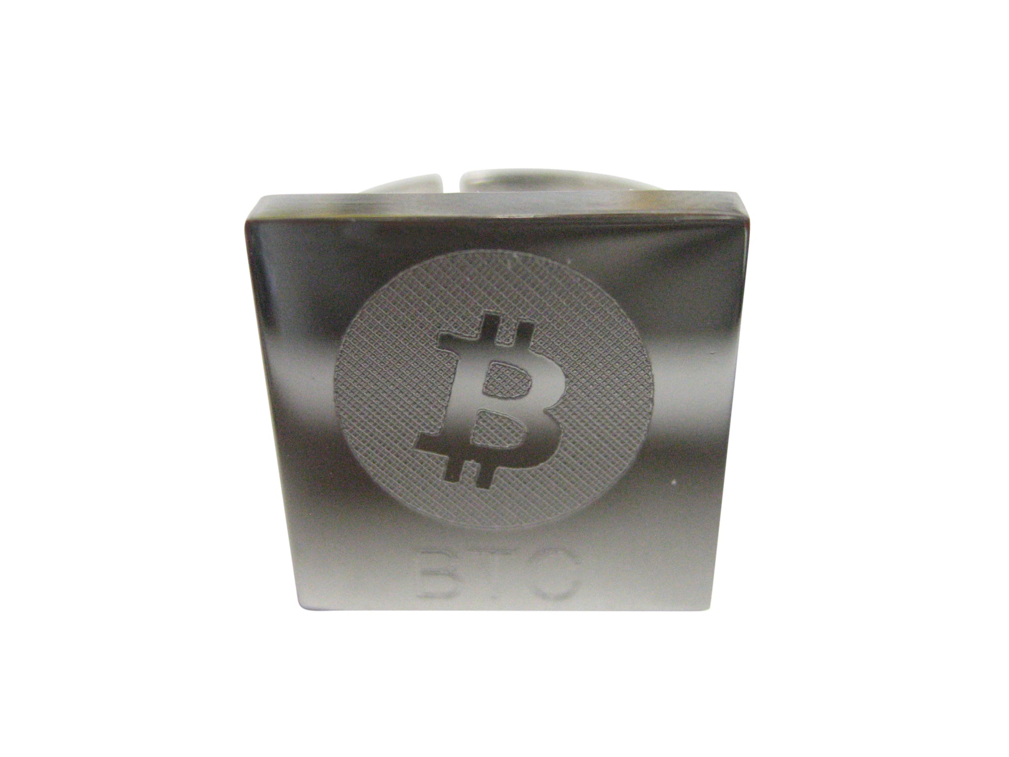 Silver Toned Square Etched Bitcoin Coin Cryptocurrency Blockchain Adjustable Size Fashion Ring