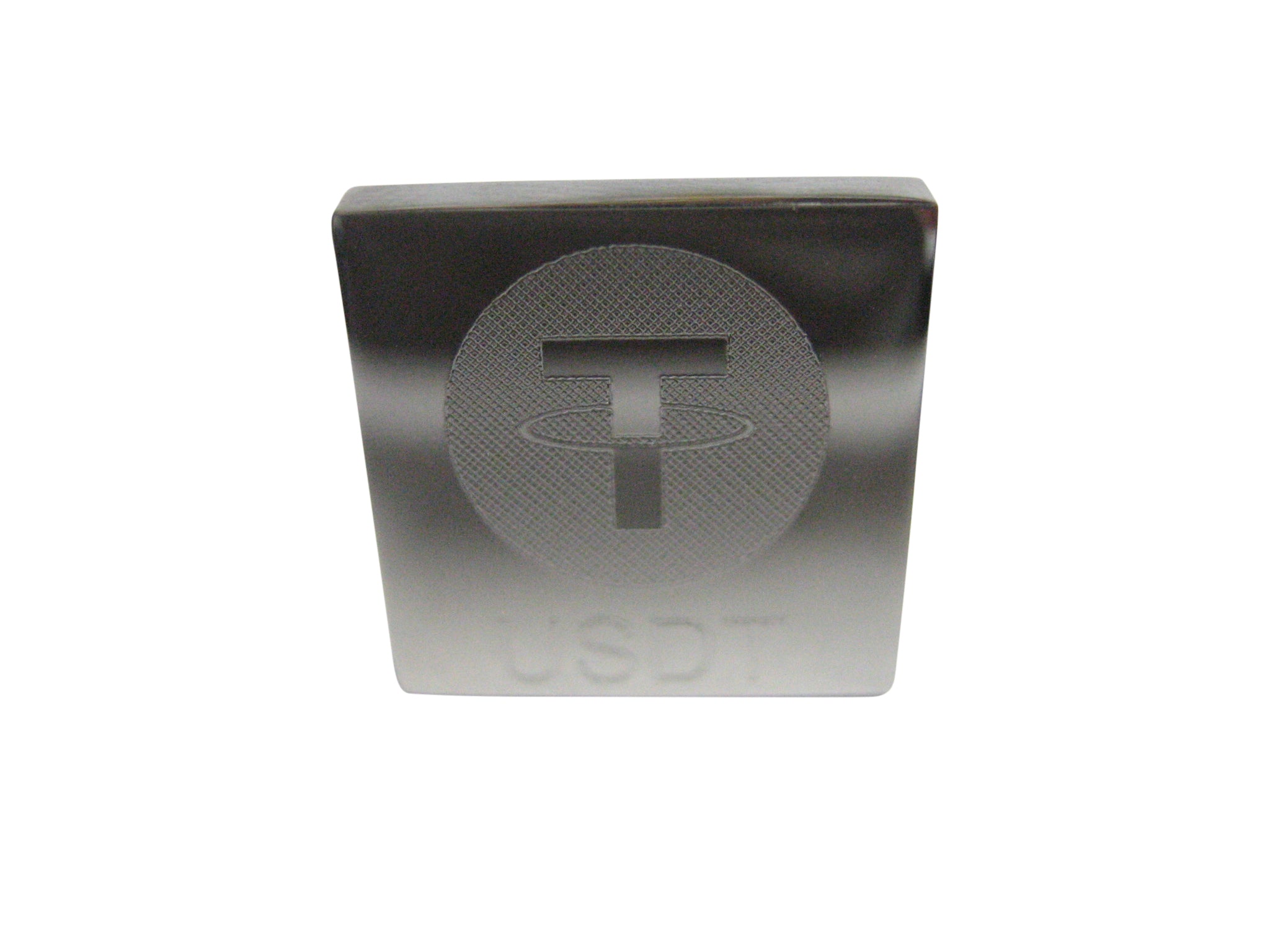 Silver Toned Square Etched Tether Stable Coin USDT Cryptocurrency Blockchain Adjustable Size Ring
