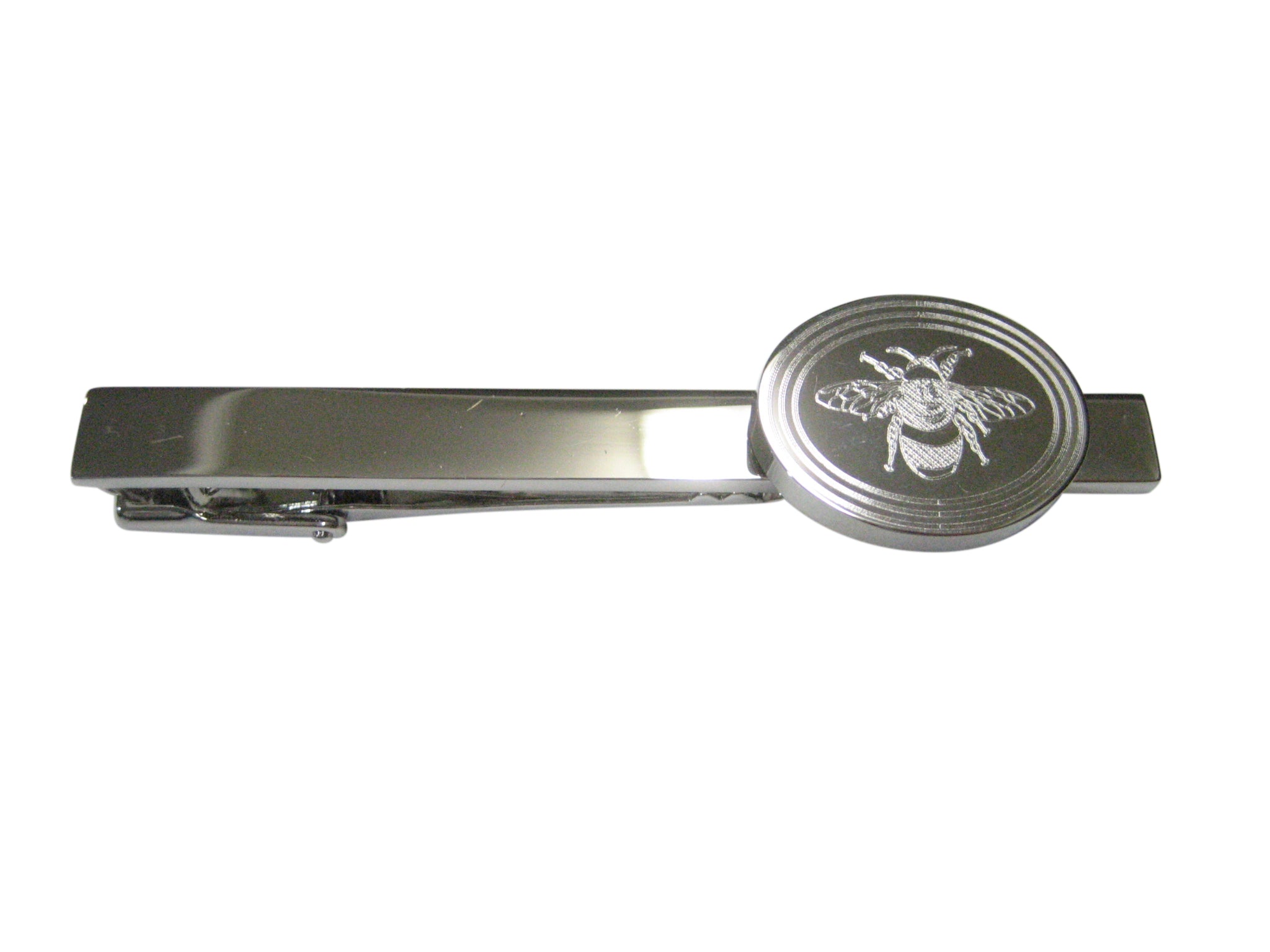Silver Toned Etched Oval Bumble Bee Tie Clip