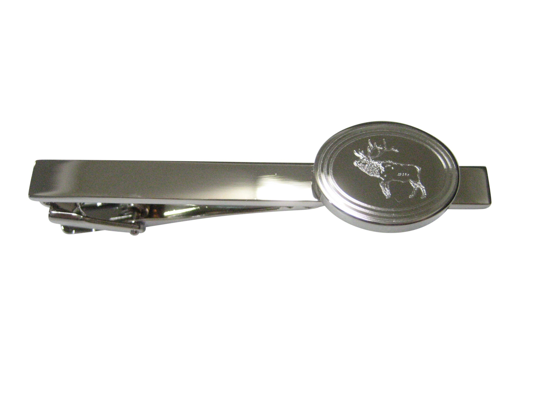 Silver Toned Etched Oval Elk Tie Clip