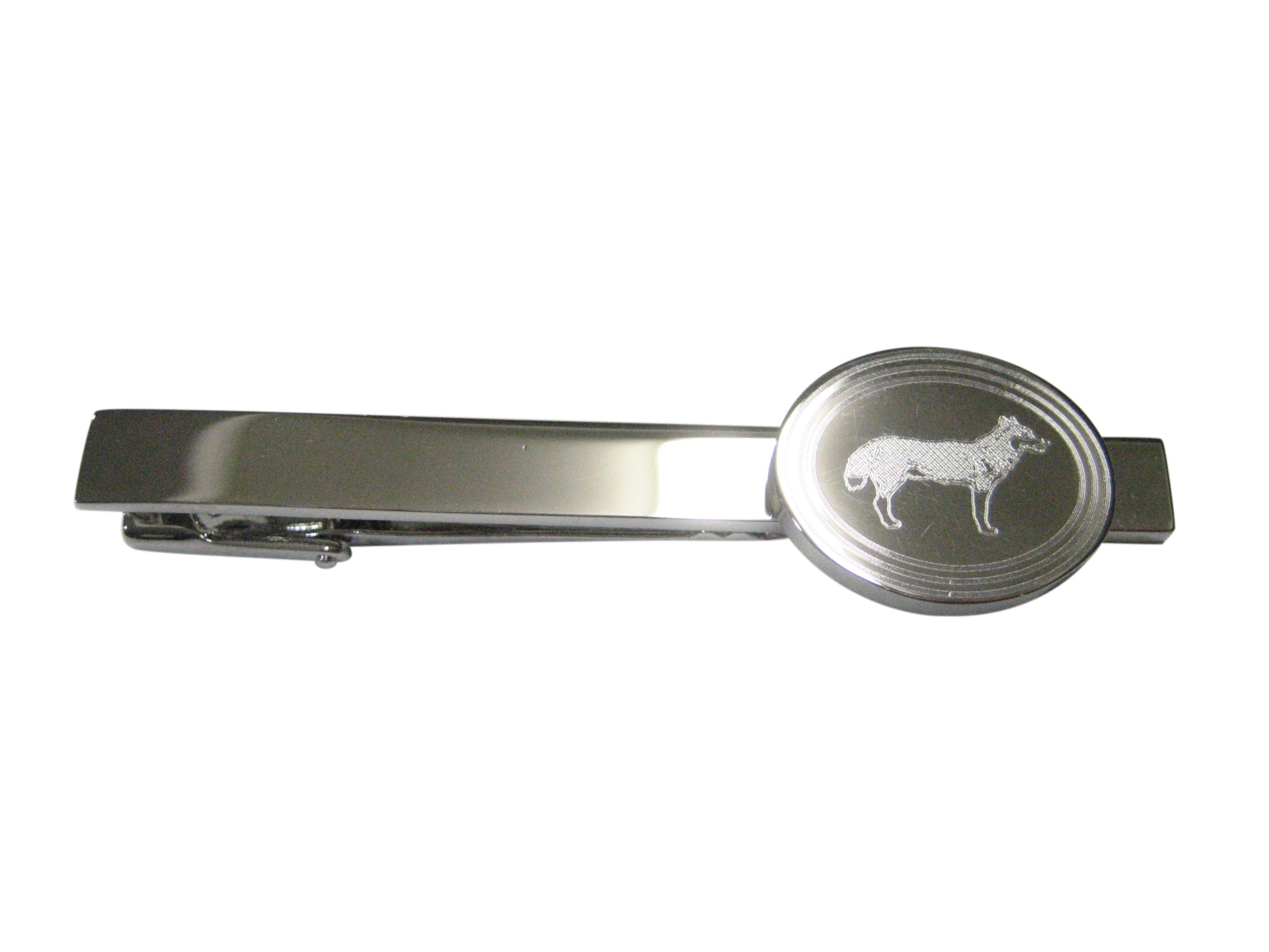 Silver Toned Etched Oval Full Dog Tie Clip