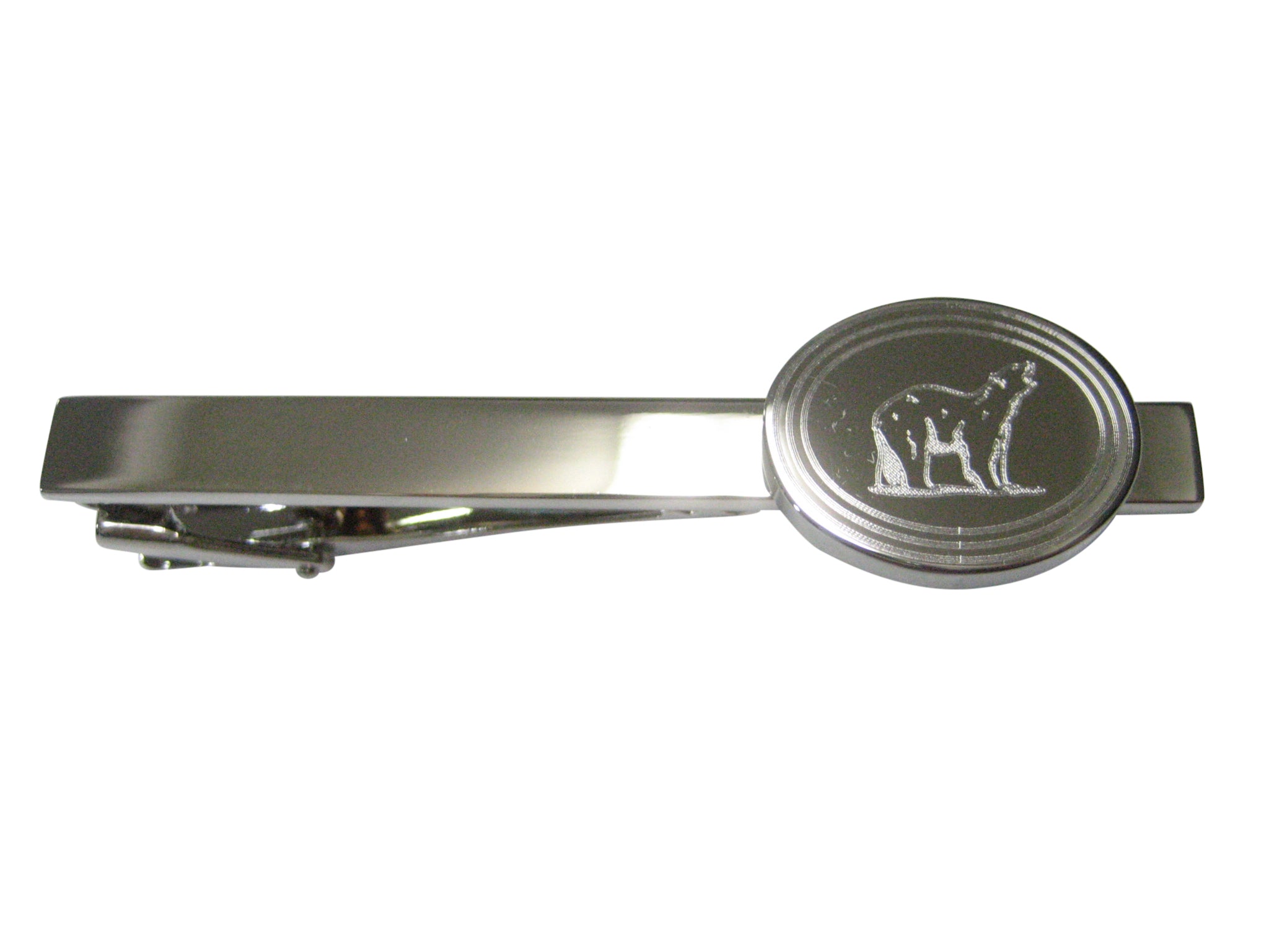 Silver Toned Etched Oval Polar Bear Tie Clip