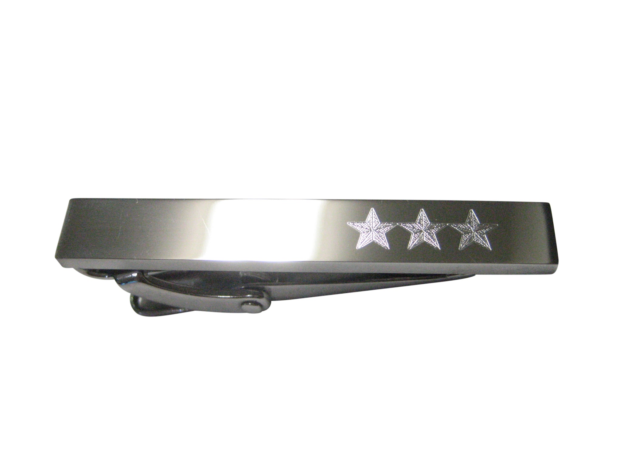 Silver Toned Etched Sleek 3 Stars Skinny Tie Clip