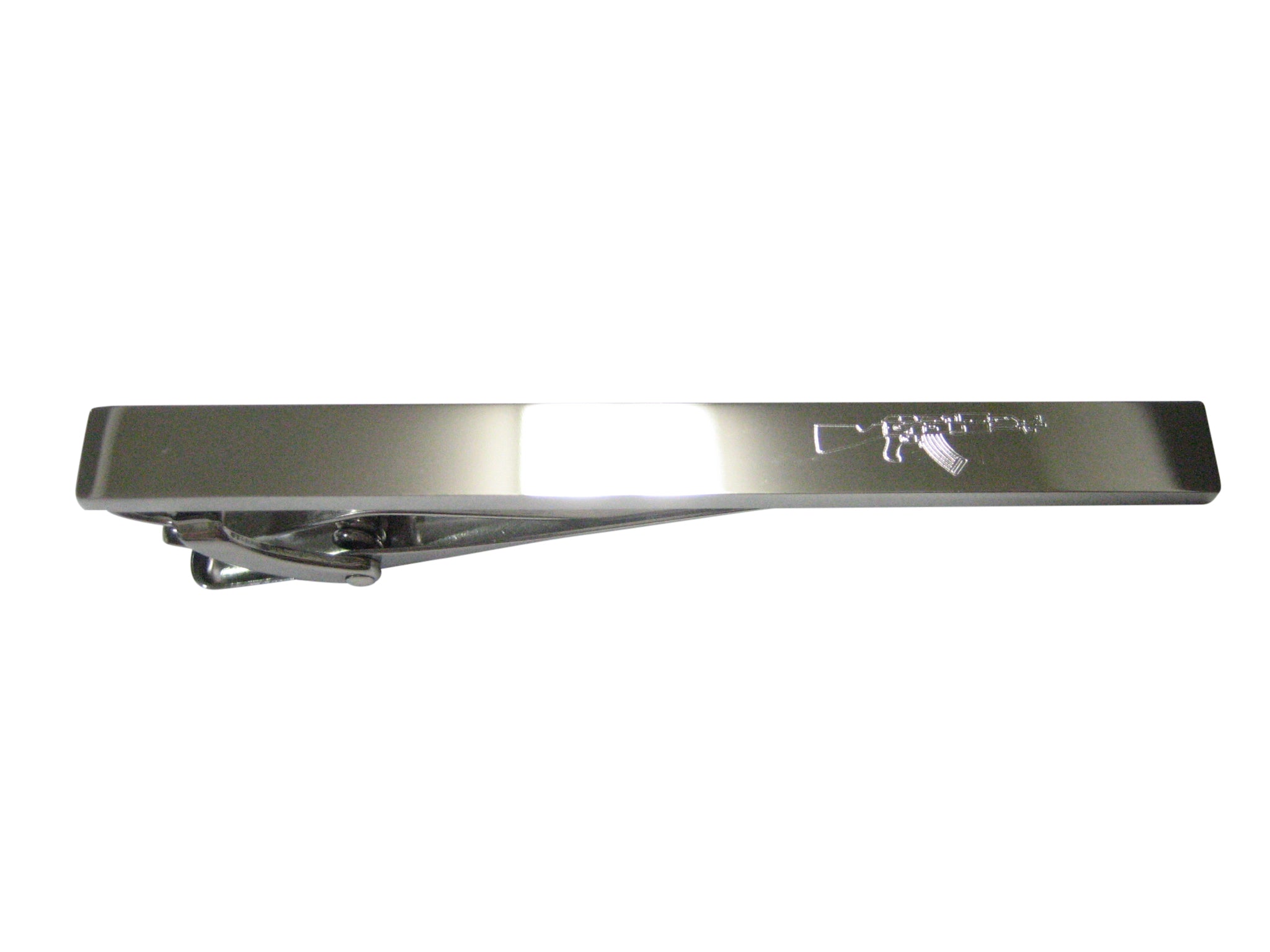 Silver Toned Etched Sleek AK47 Rifle V4 Tie Clip