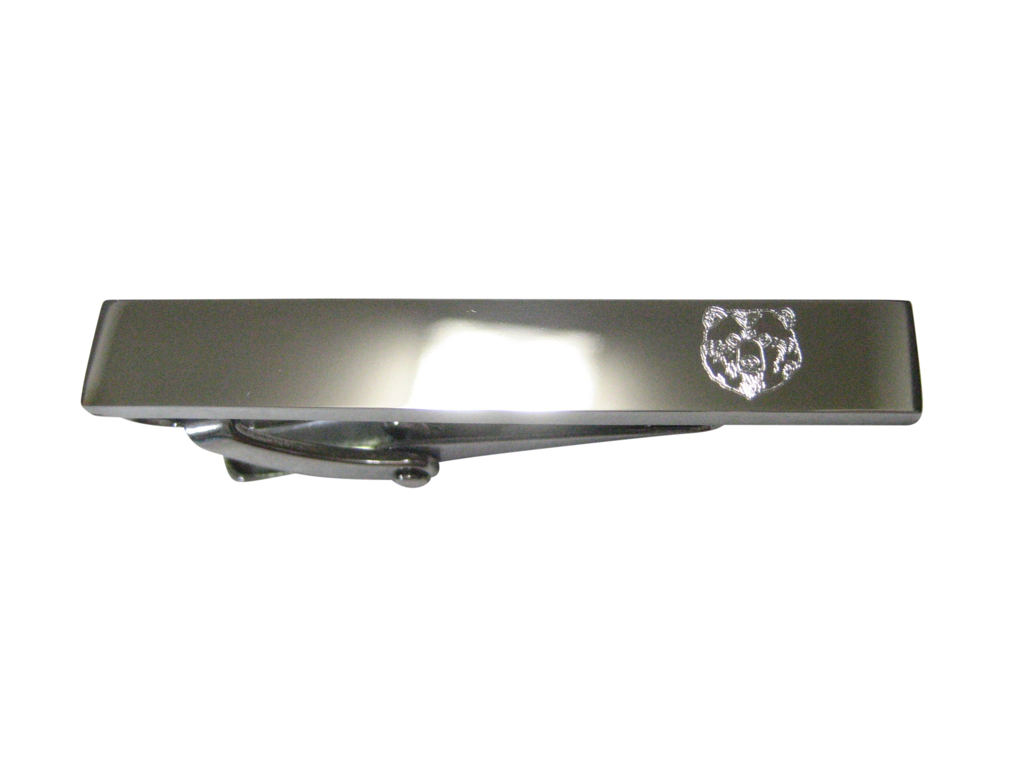 Silver Toned Etched Sleek Bear Head Skinny Tie Clip