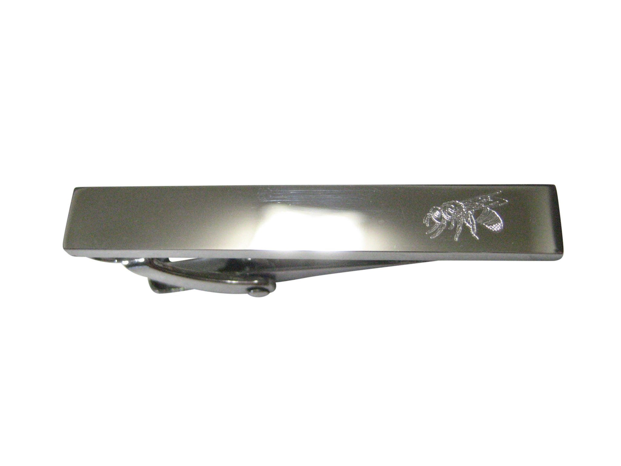 Silver Toned Etched Sleek Bee Skinny Tie Clip