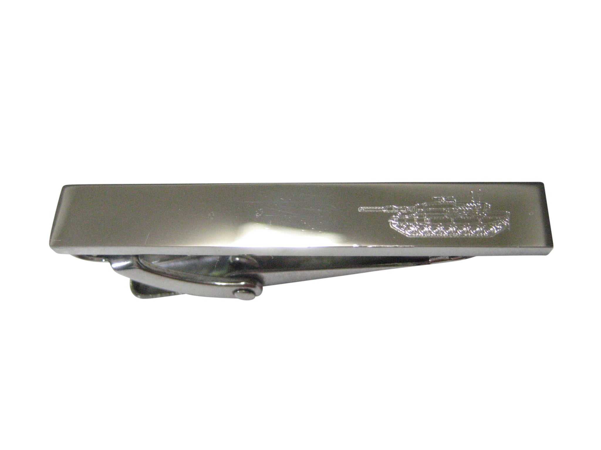 Silver Toned Etched Sleek Detailed Tank Skinny Tie Clip