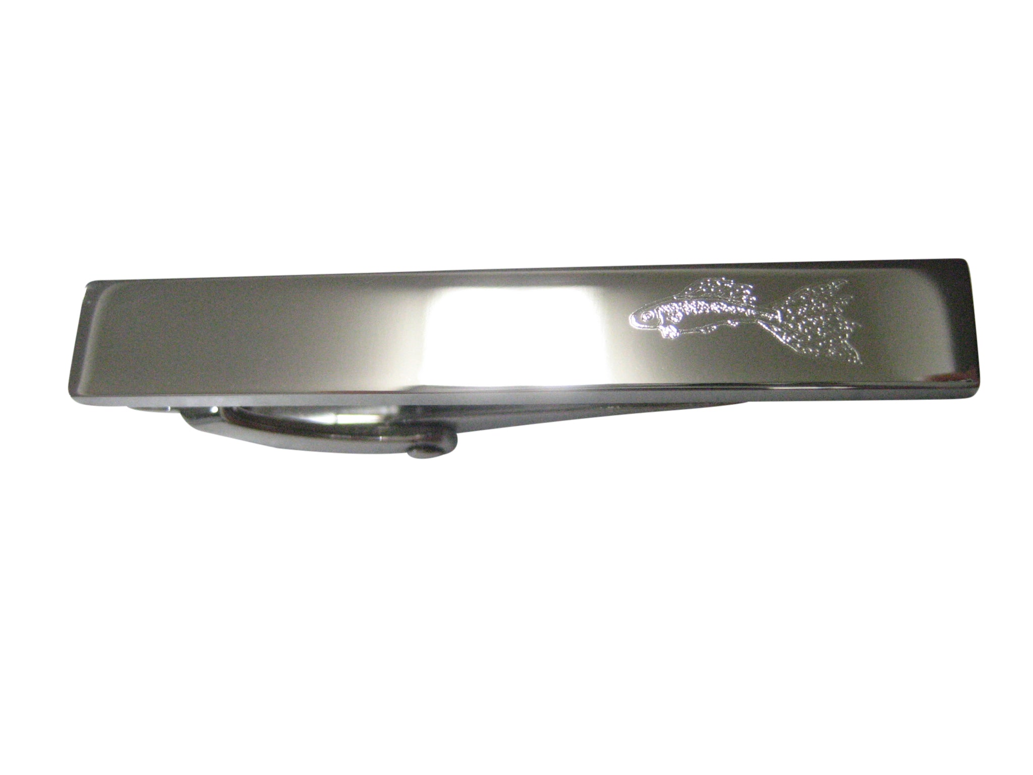 Silver Toned Etched Sleek Guppy Fish Skinny Tie Clip