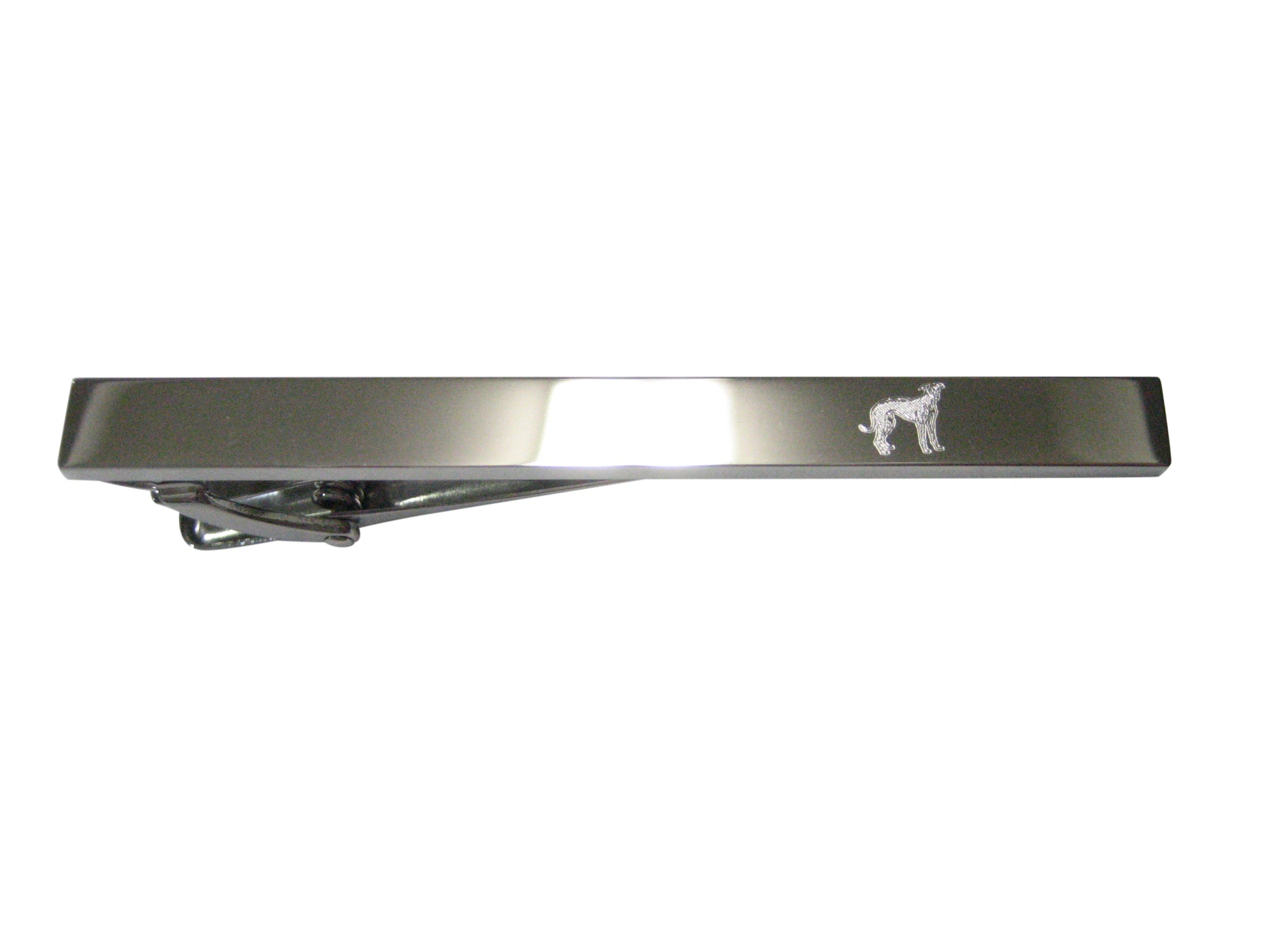 Silver Toned Etched Sleek Hound Dog Tie Clip