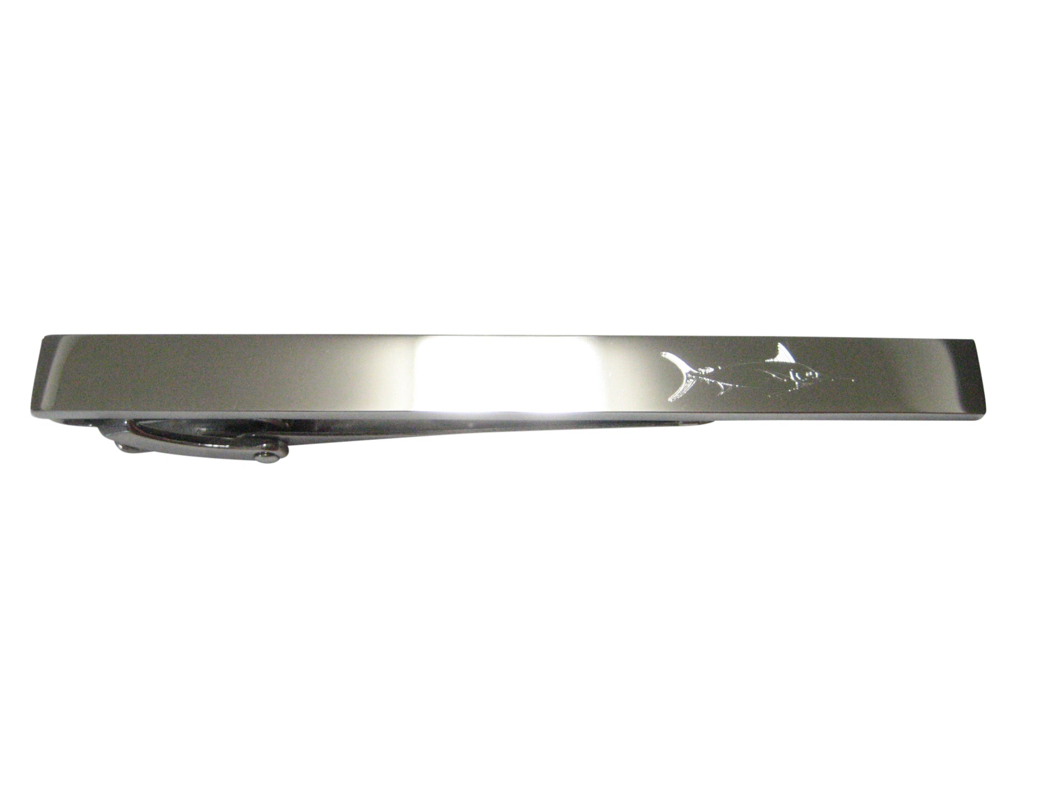 Silver Toned Etched Sleek Marlin Sailfish Tie Clip