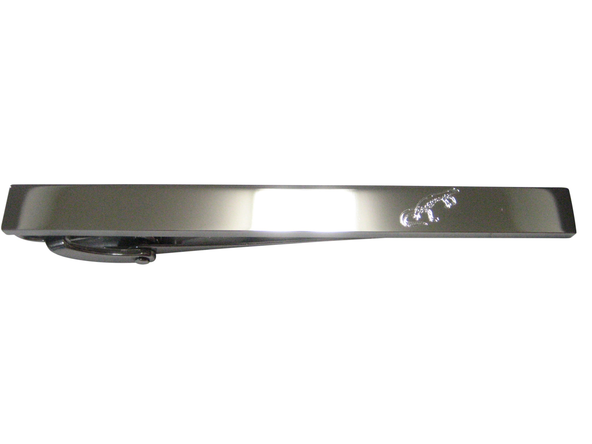 Silver Toned Etched Sleek Newt Gecko Lizard Tie Clip