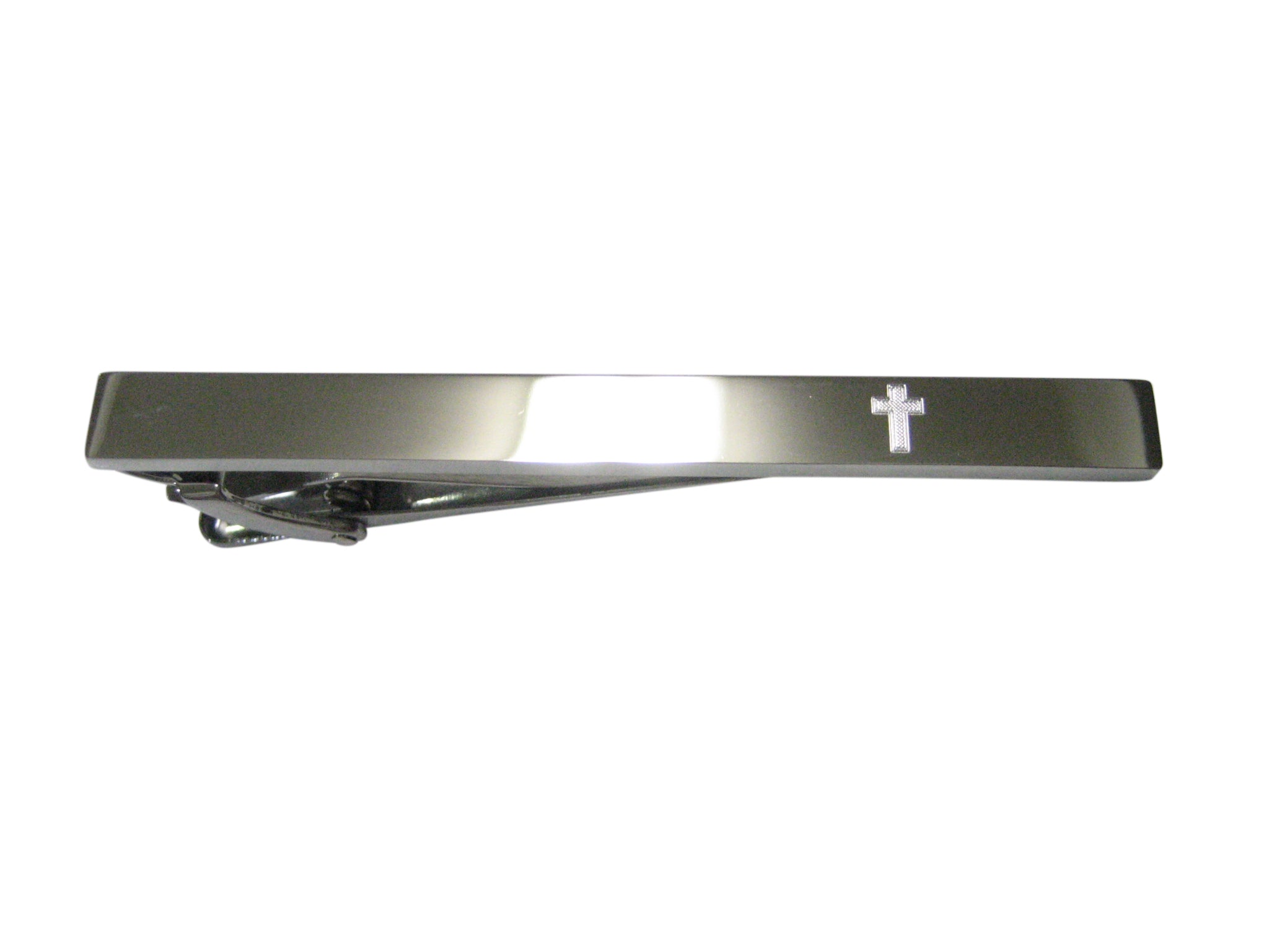 Silver Toned Etched Sleek Religious Cross Tie Clip
