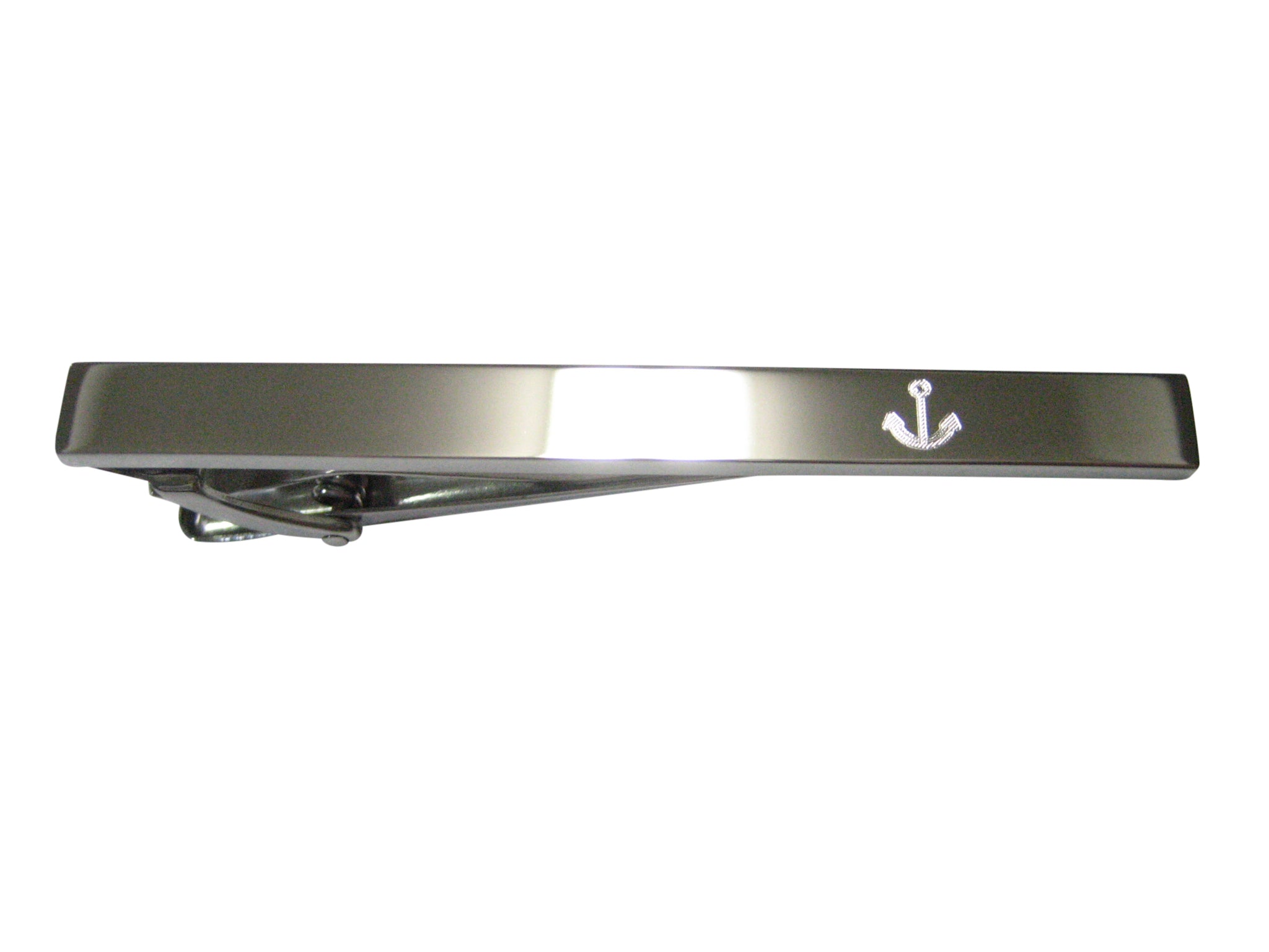 Silver Toned Etched Sleek Simple Nautical Anchor Tie Clip