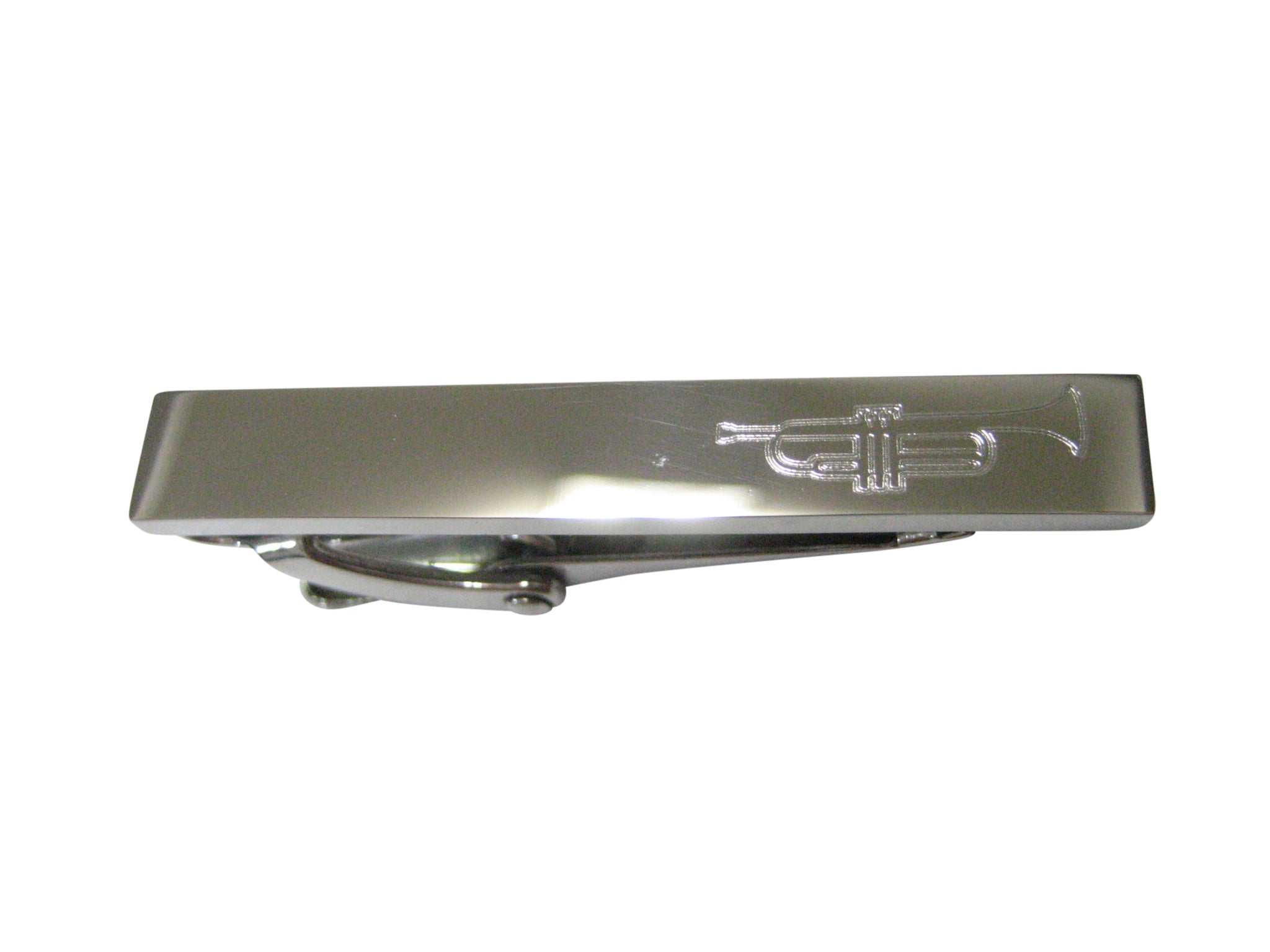 Silver Toned Etched Sleek Trumpet Music Instrument Skinny Tie Clip