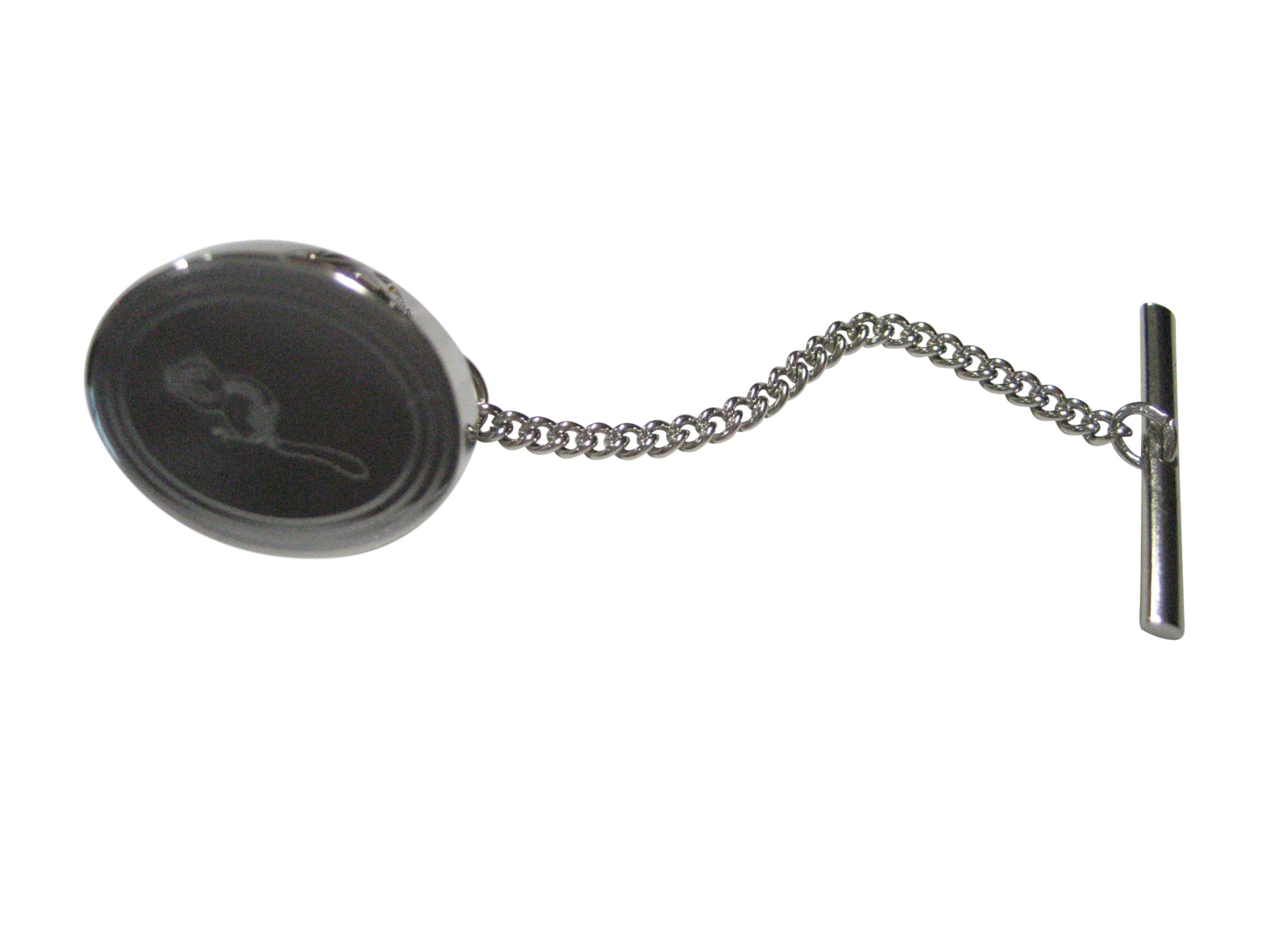 Silver Toned Etched Oval Chipmunk Tie Tack