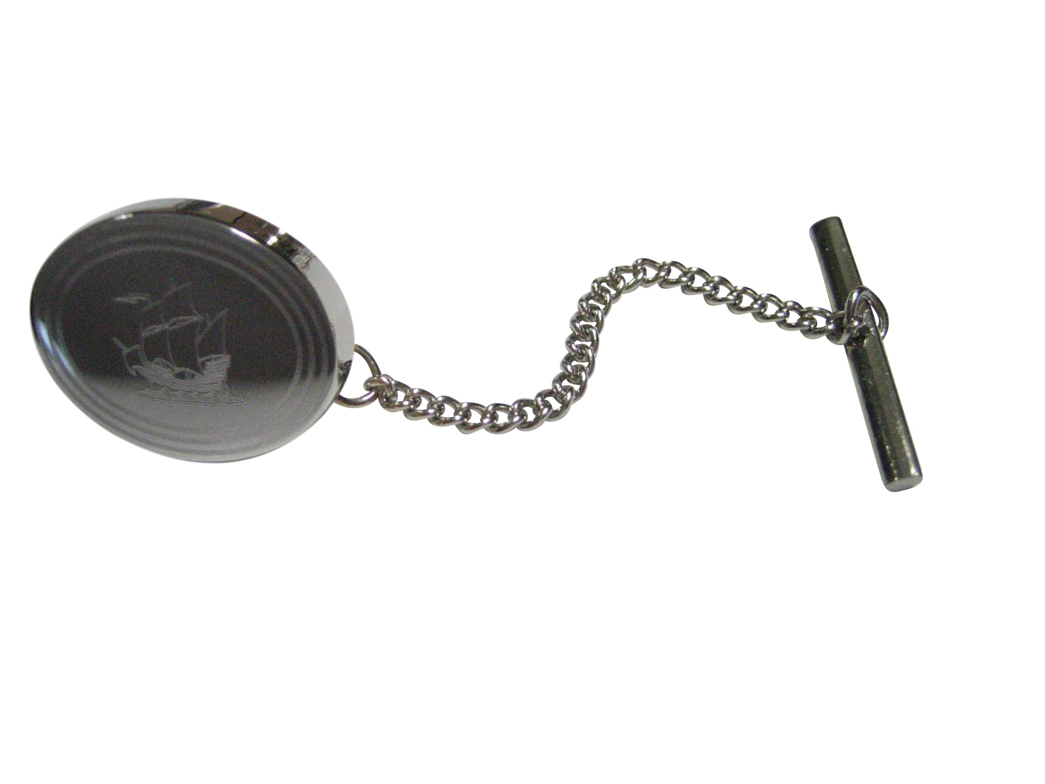 Silver Toned Etched Oval Old Style Ship Tie Tack