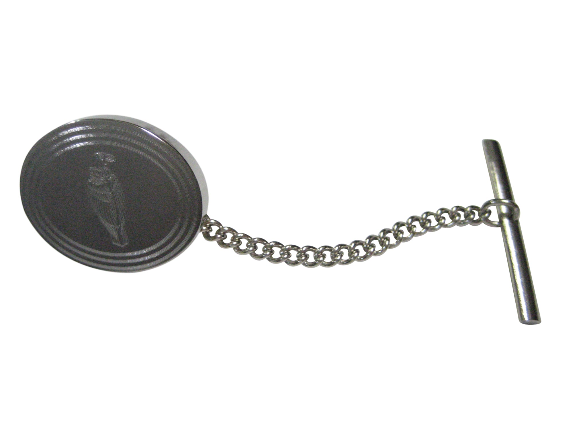 Silver Toned Etched Oval Vulture Bird Tie Tack