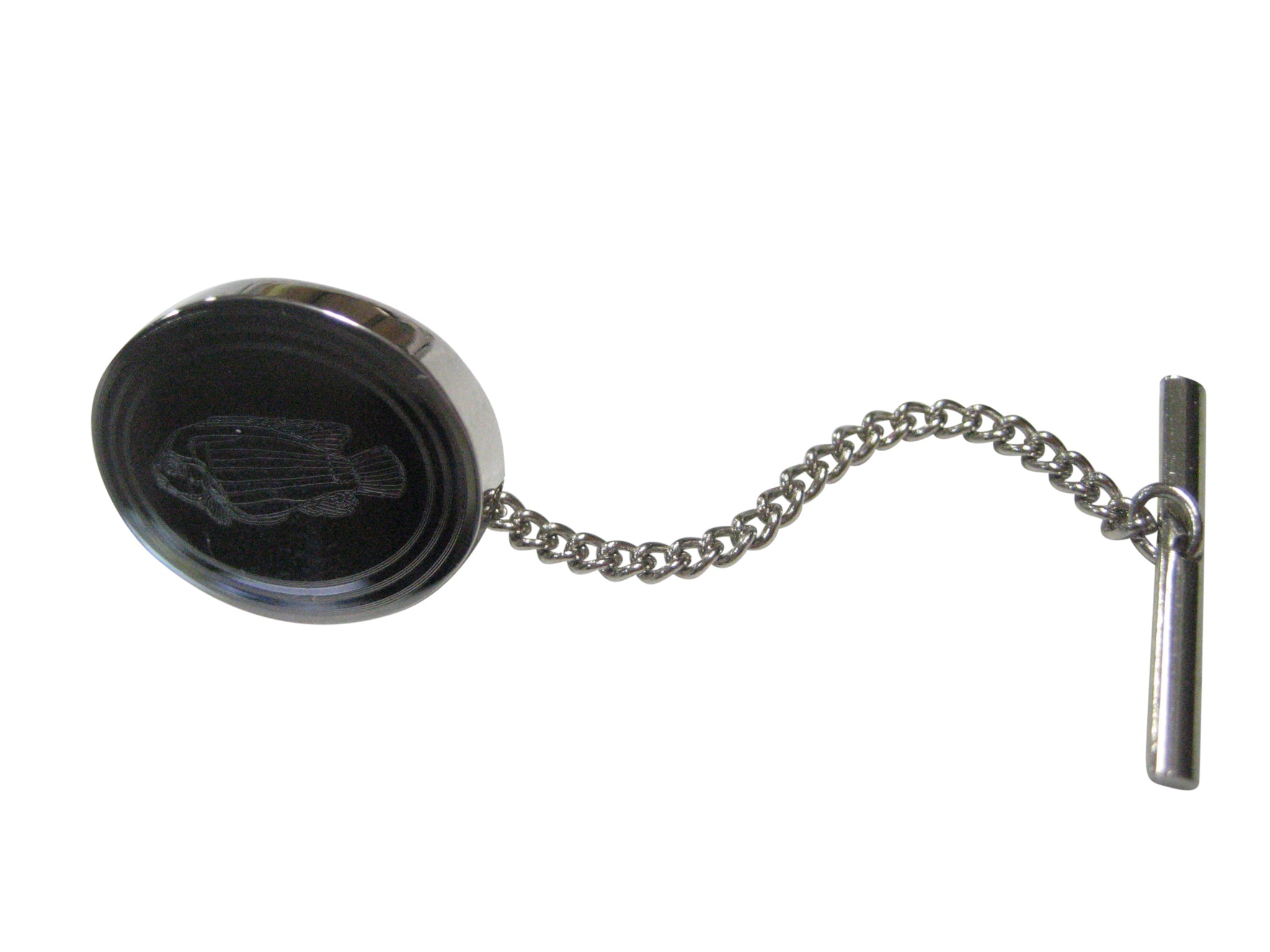 Silver Toned Oval Etched African Cichlid Fish Tie Tack