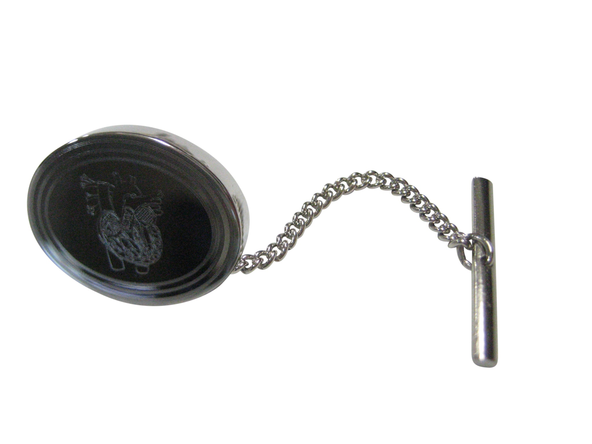 Silver Toned Oval Etched Anatomical Heart Tie Tack