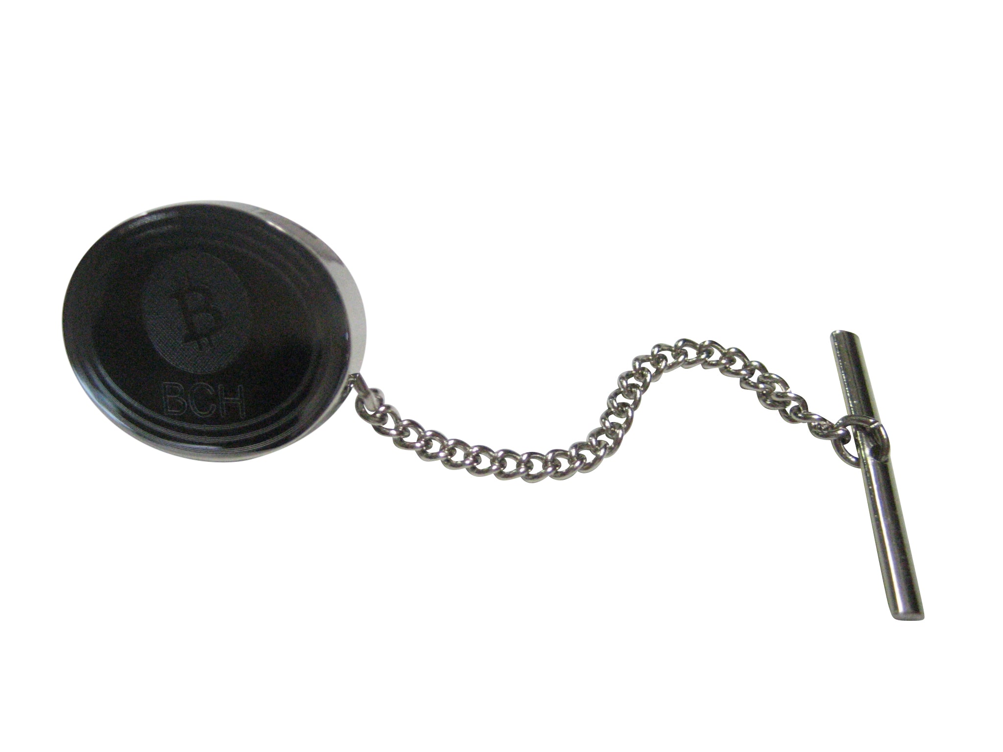 Silver Toned Oval Etched Bitcoin Cash Coin Cryptocurrency Blockchain Tie Tack