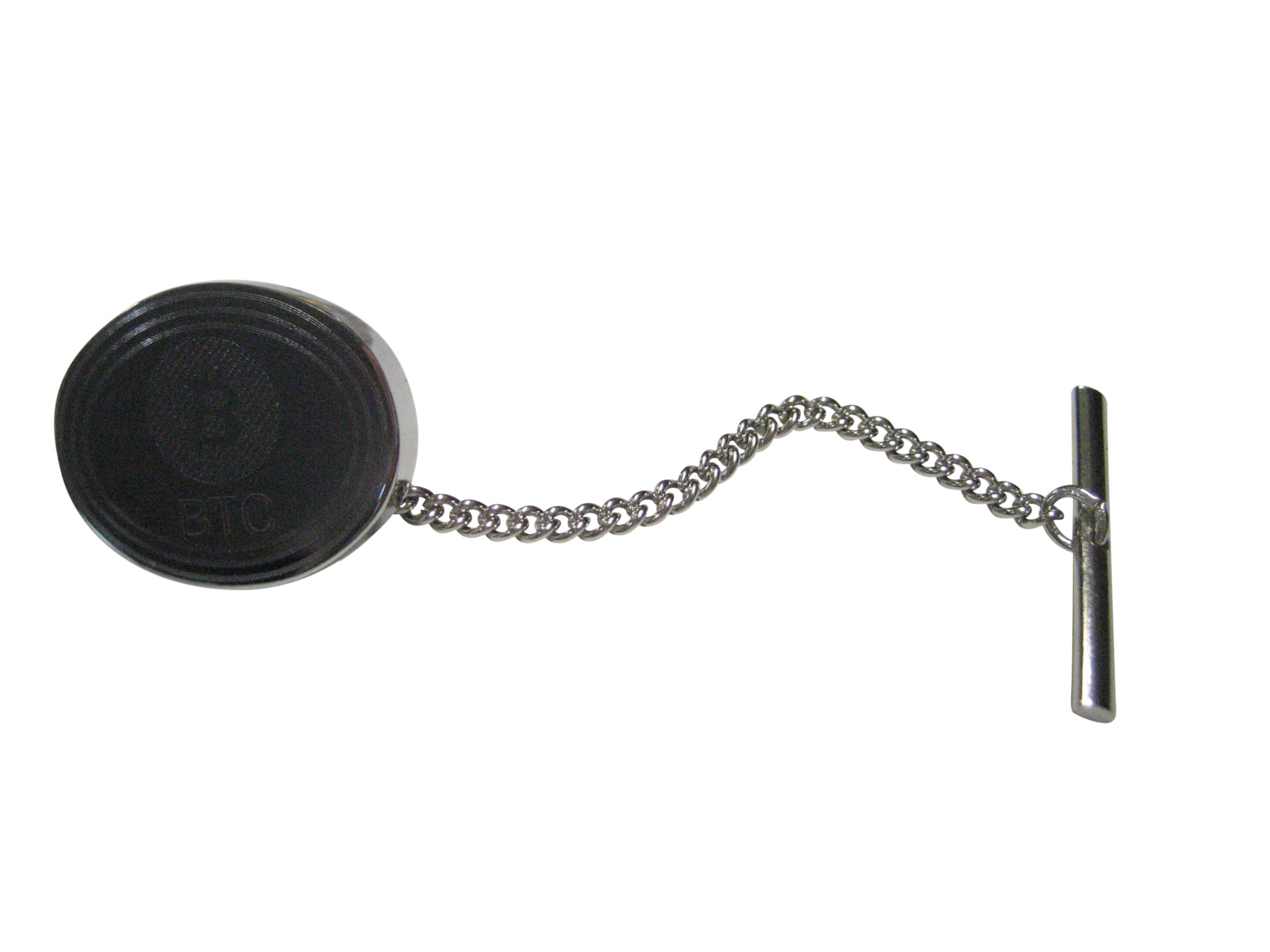 Silver Toned Oval Etched Bitcoin Coin Cryptocurrency Blockchain Tie Tack